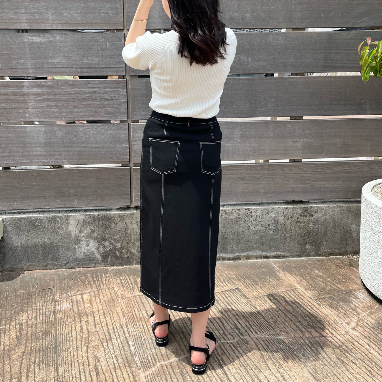縦に入ったステッチラインでスタイルアップ⤴︎