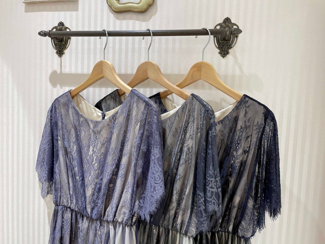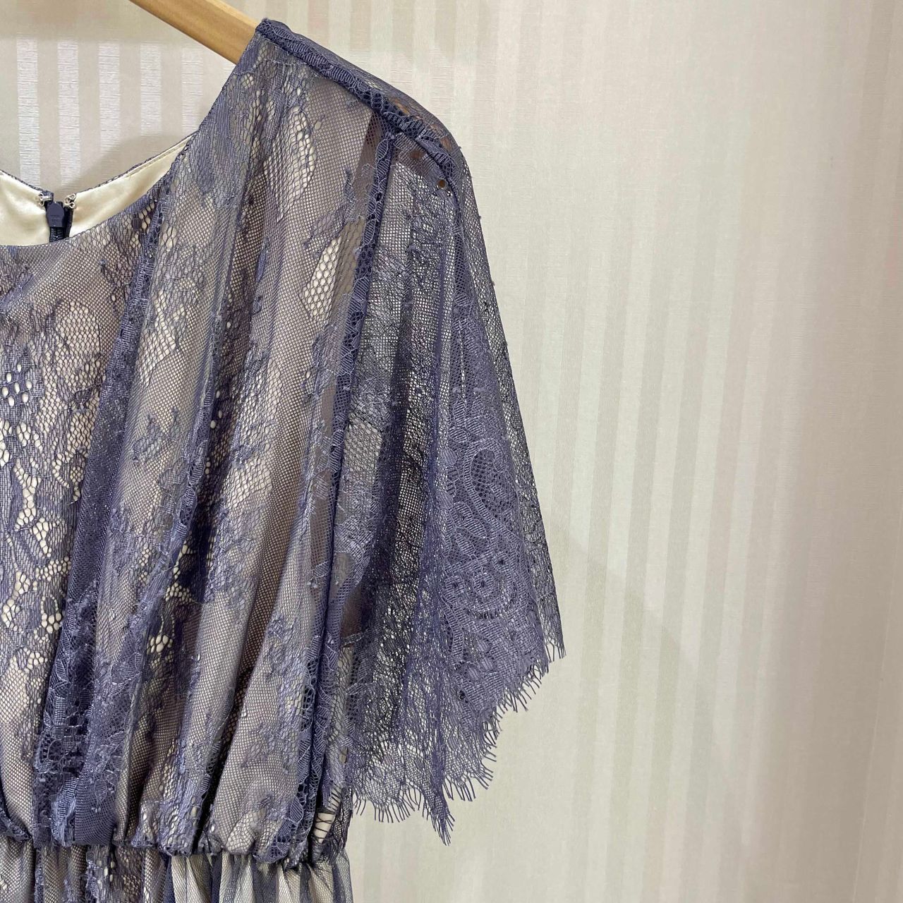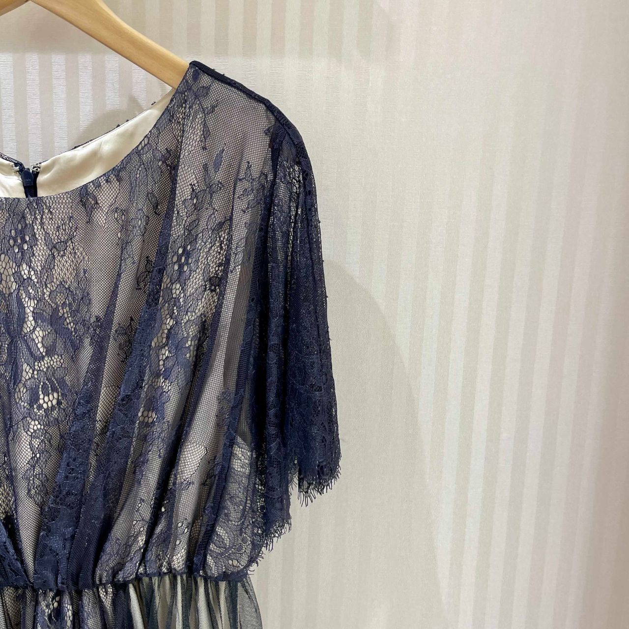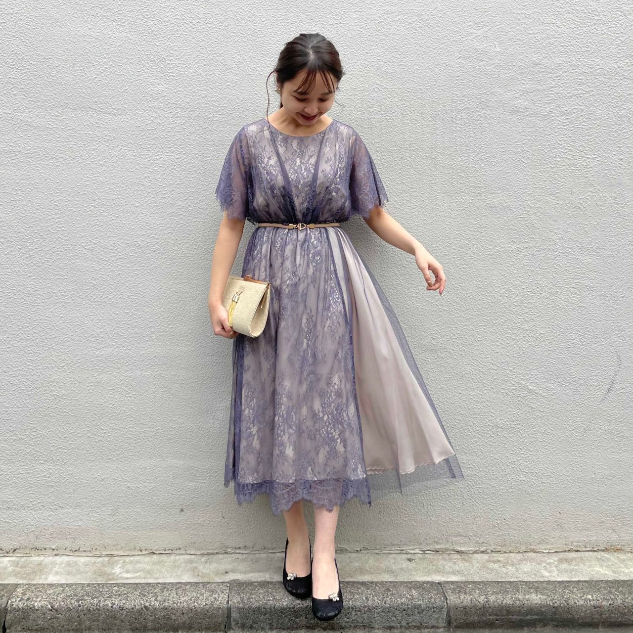 透け感のある生地と、ふわっと広がるスカートがエレガントな雰囲気に...❤︎