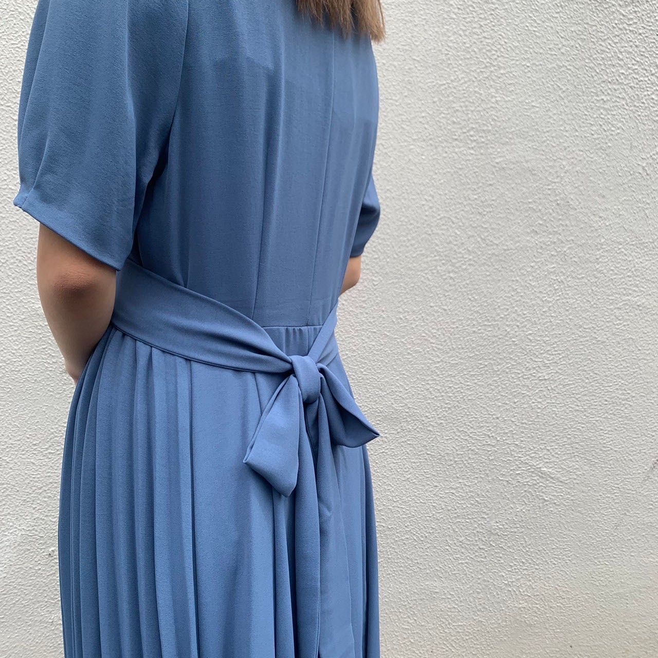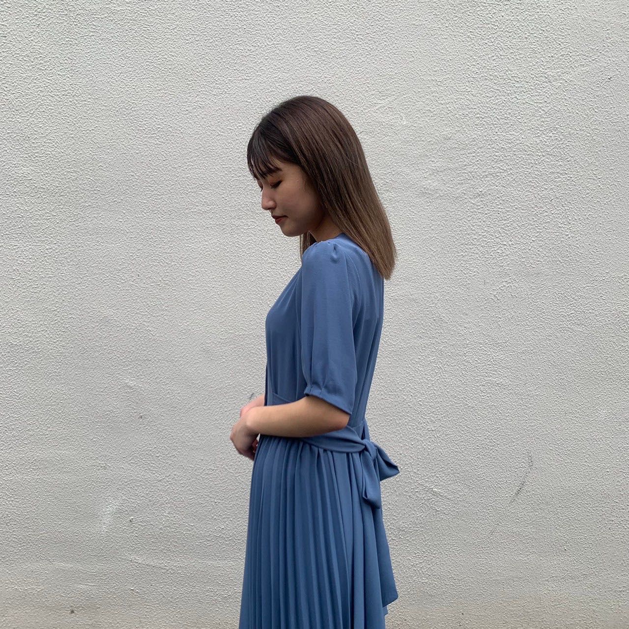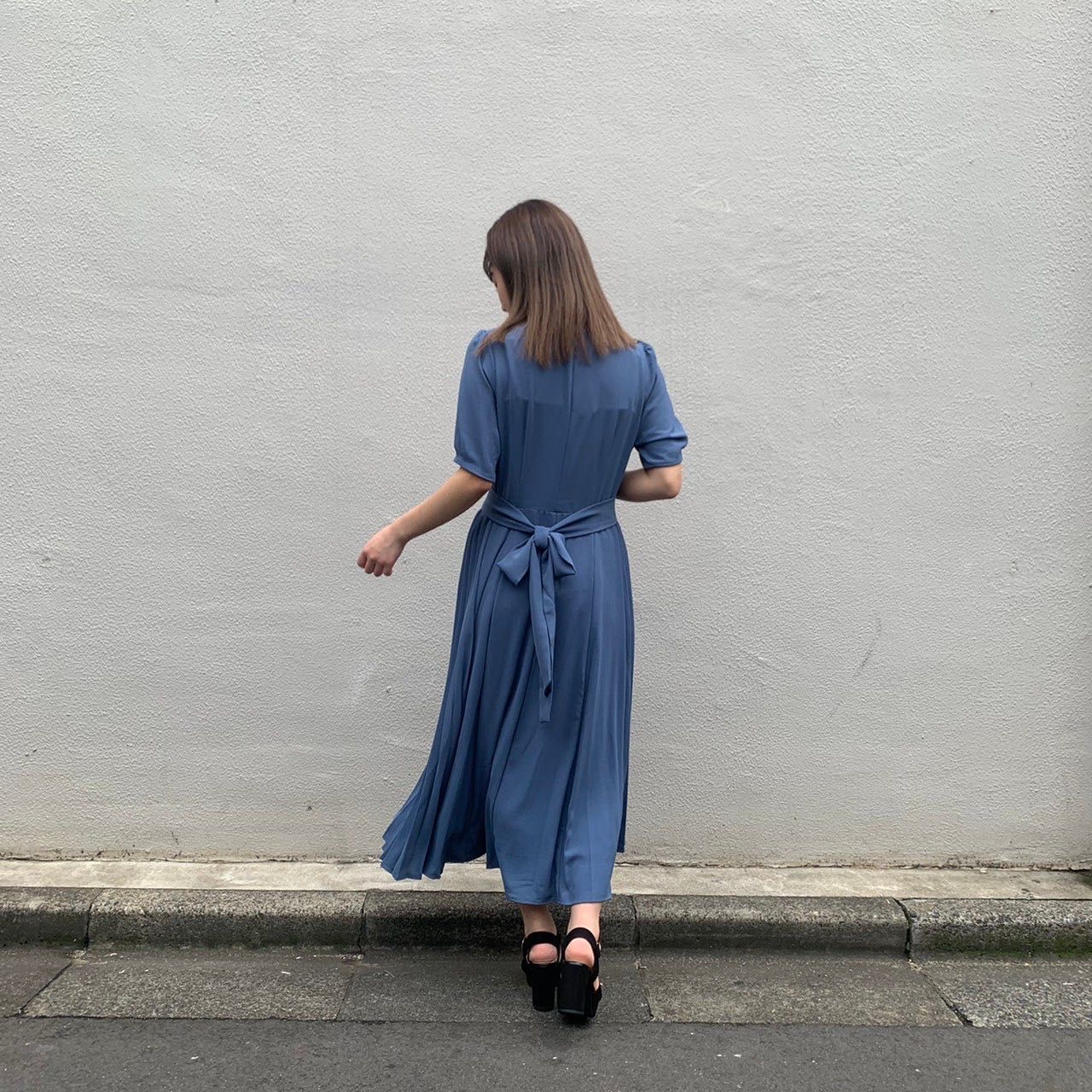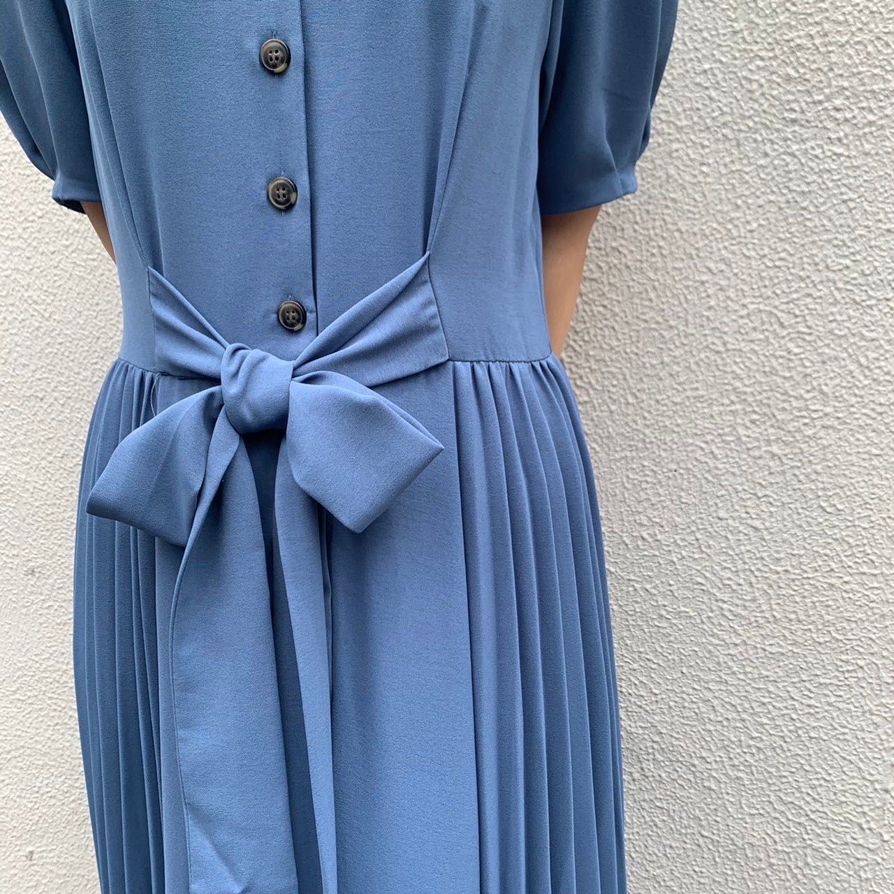 前でリボンを結ぶとサイドプリーツがより映えシルエットもとっても綺麗に見えます!