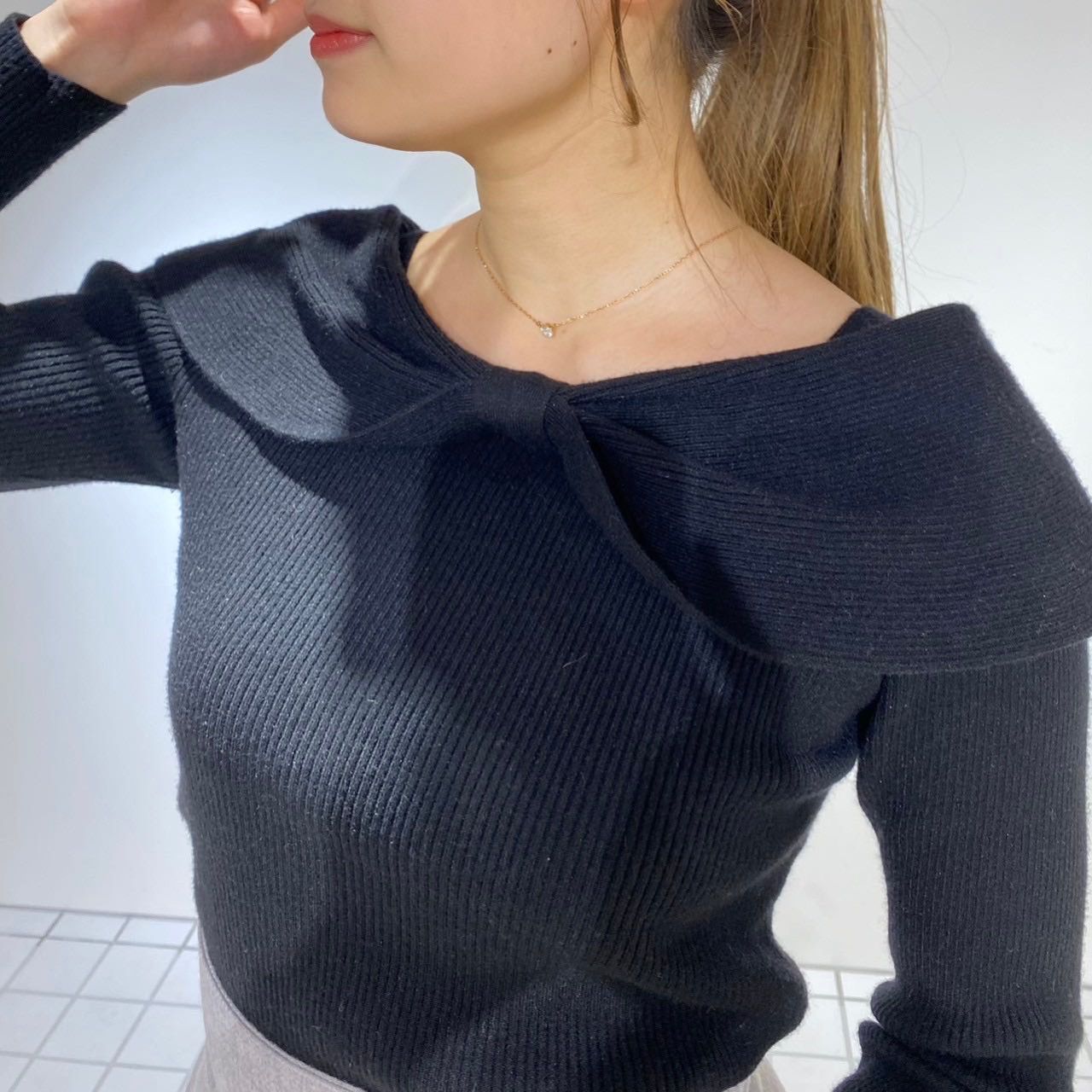 オフショルデザイン風のバーサカラーが