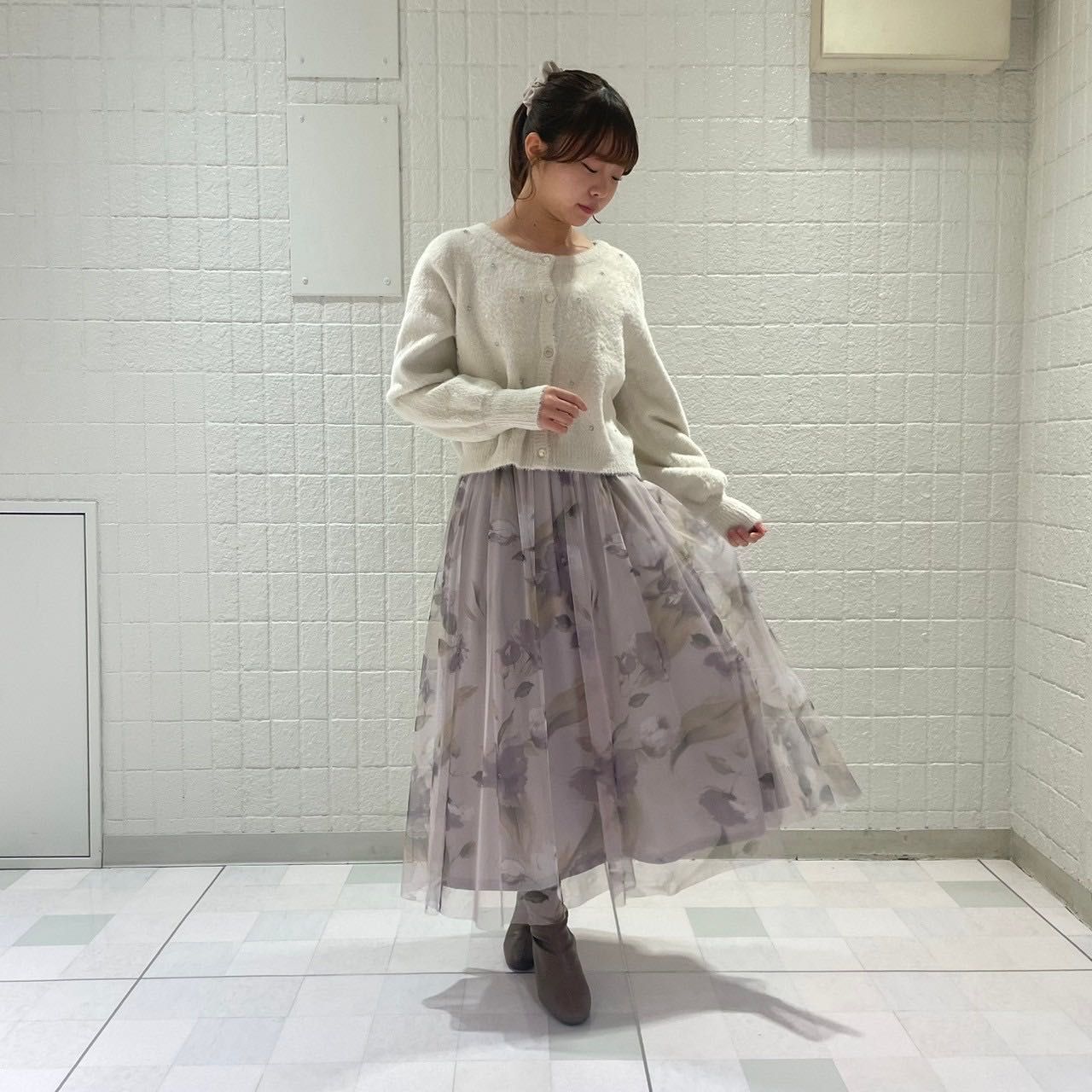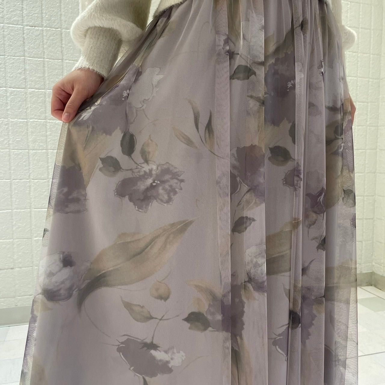 今大人気のふんわりスカート.ᐟ.ᐟ 大花柄プリントチュールスカートෆルミネエスト新宿店