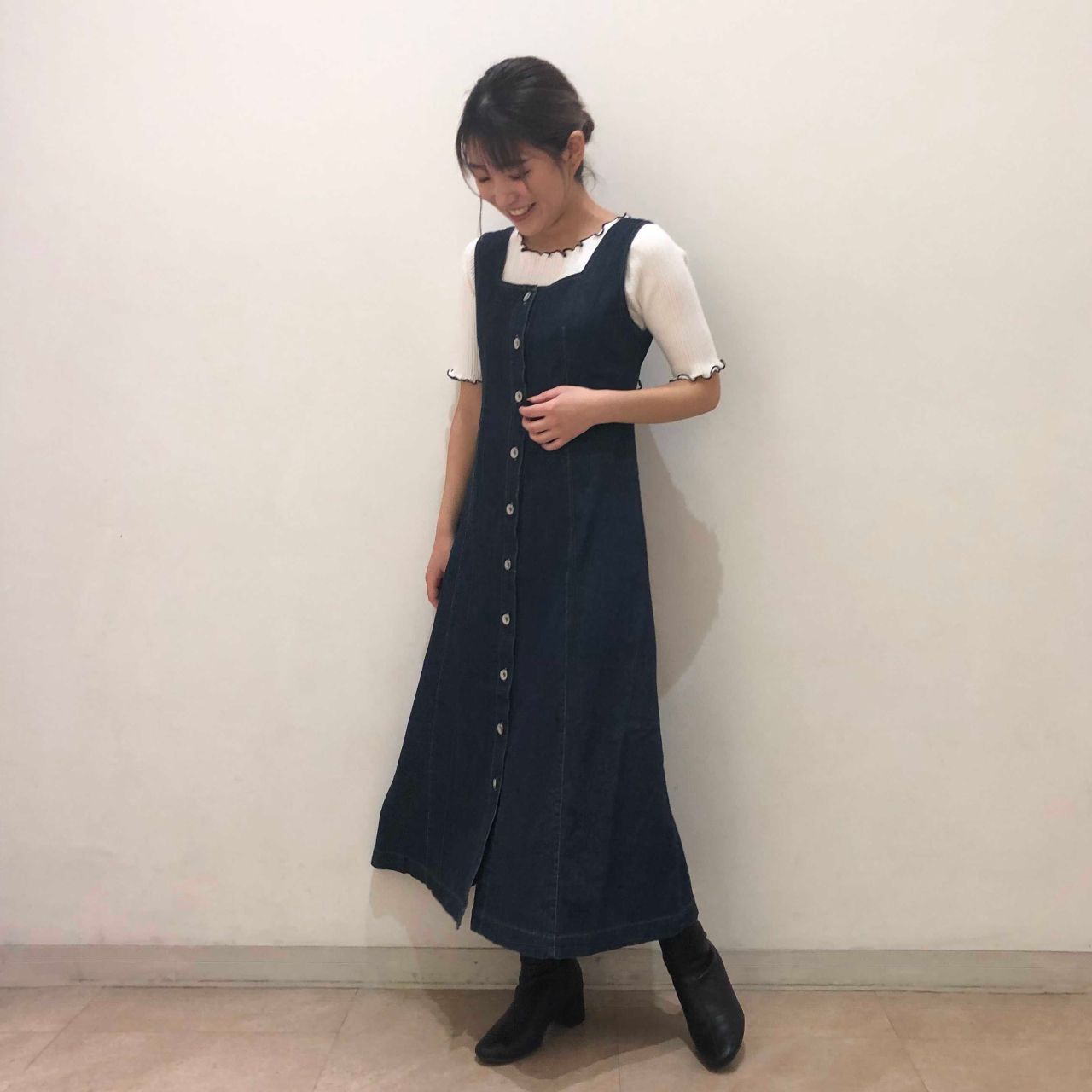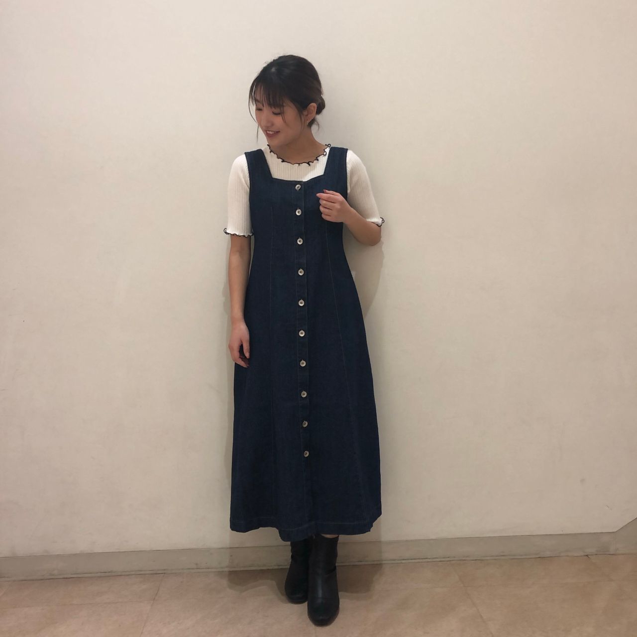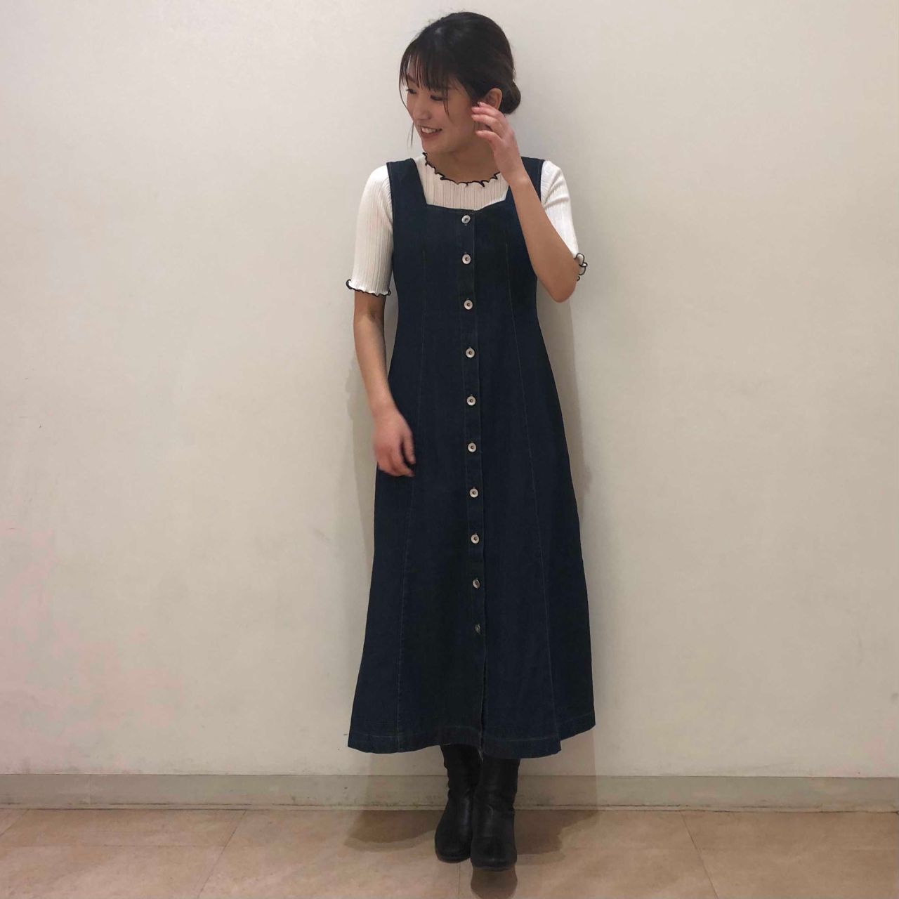 デニム生地のジャンスカが