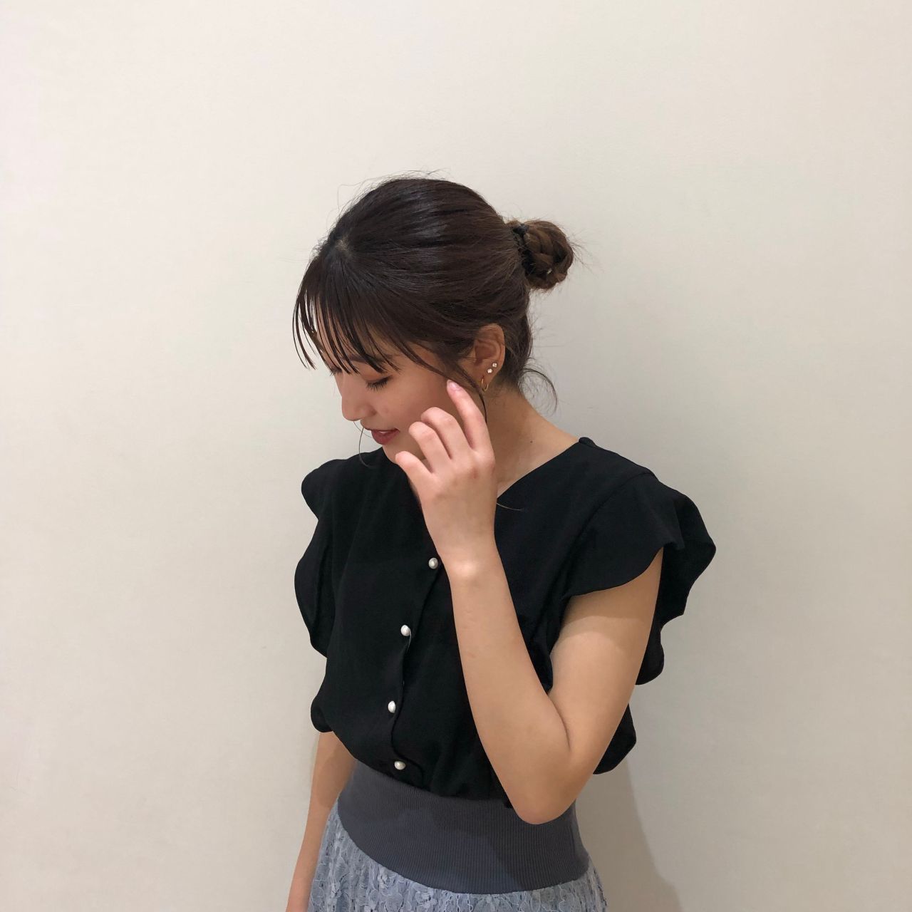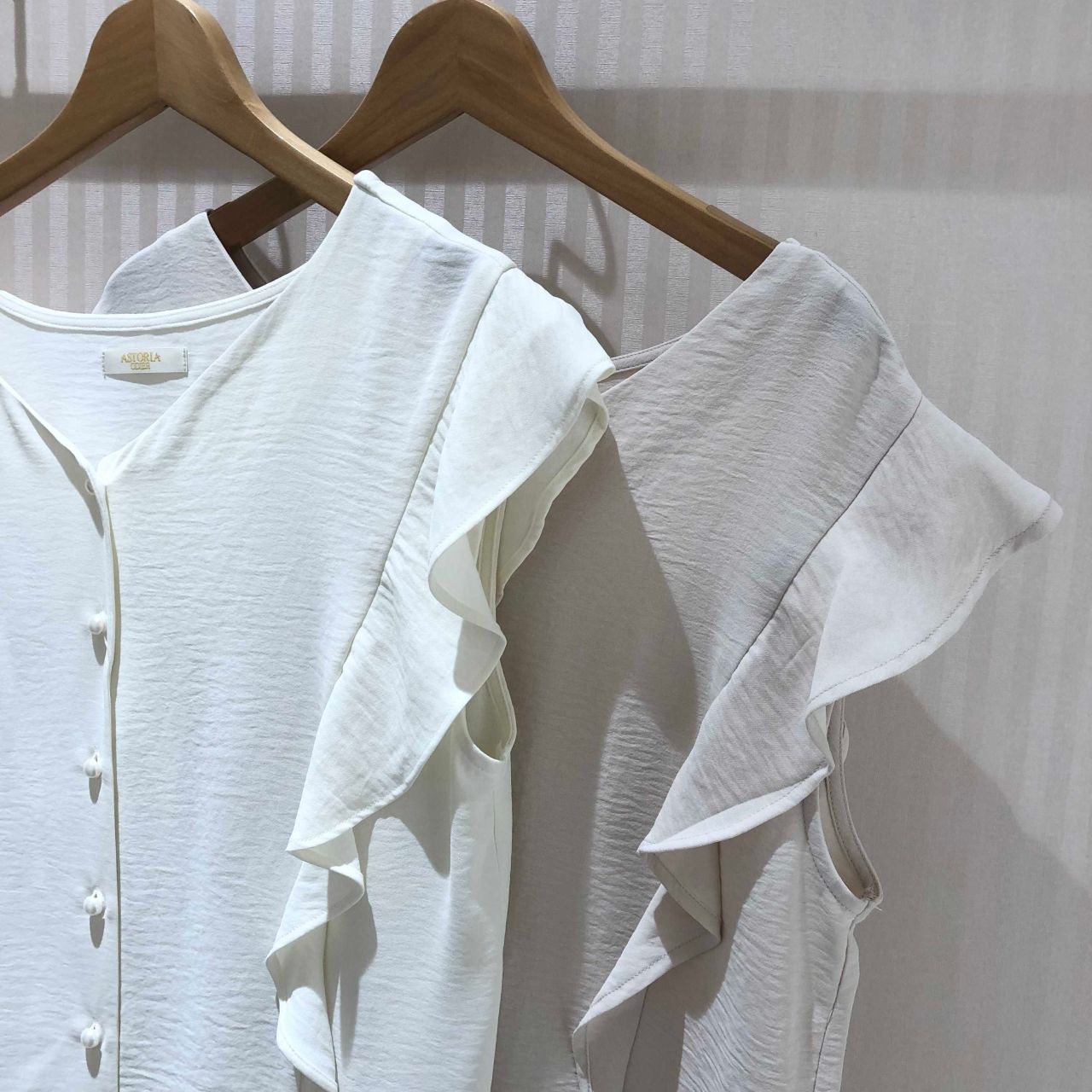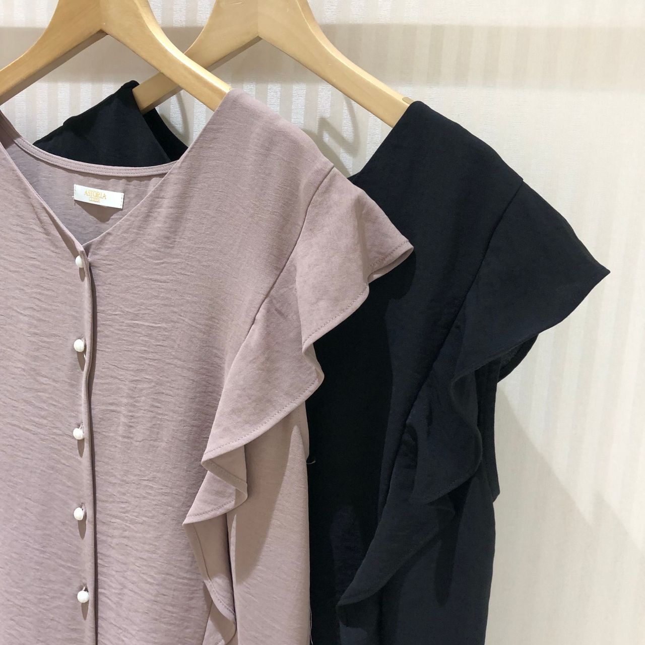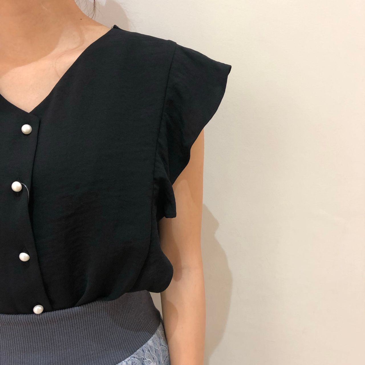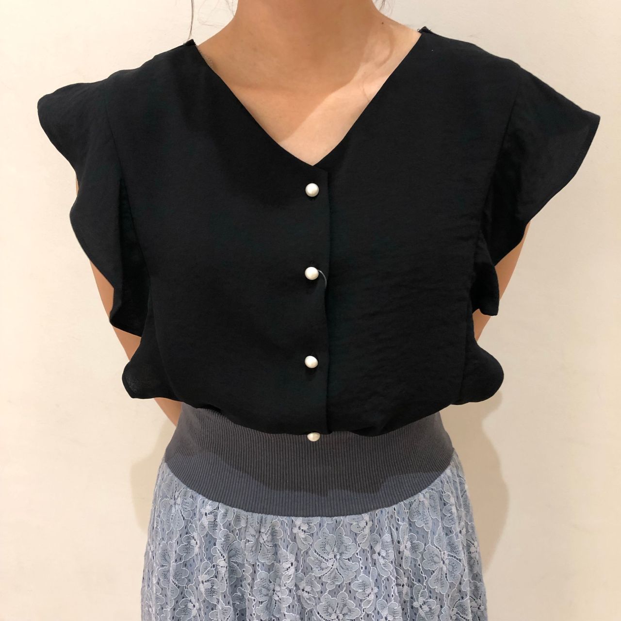 staff:155cm【 肩フリルパール釦ブラウス 】