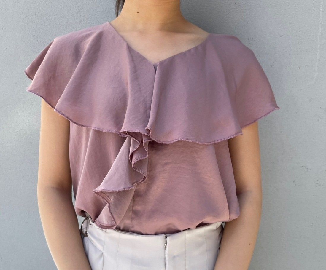 ツヤ感を抑えたビンテージサテンでこなれ感溢れるラッフルブラウスです ♡