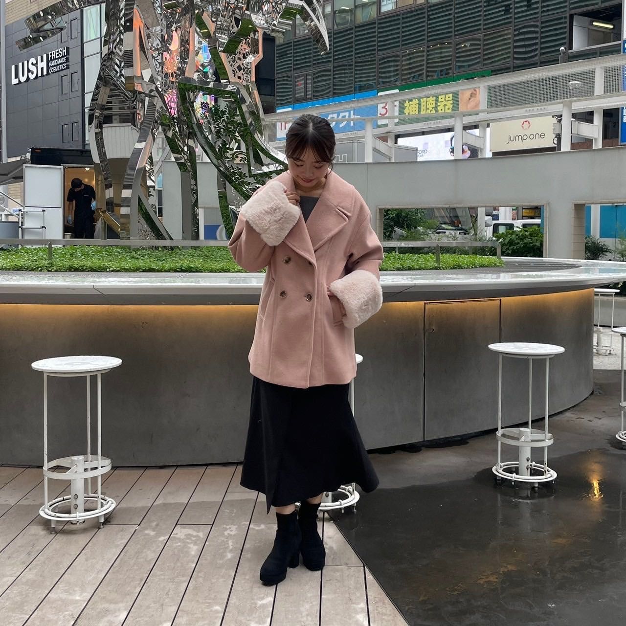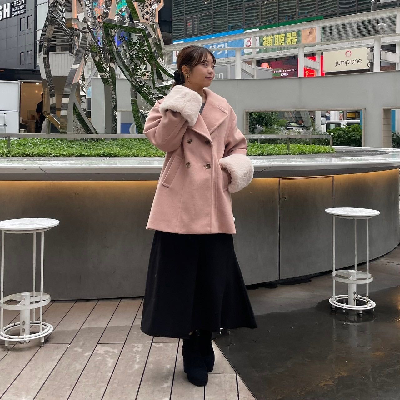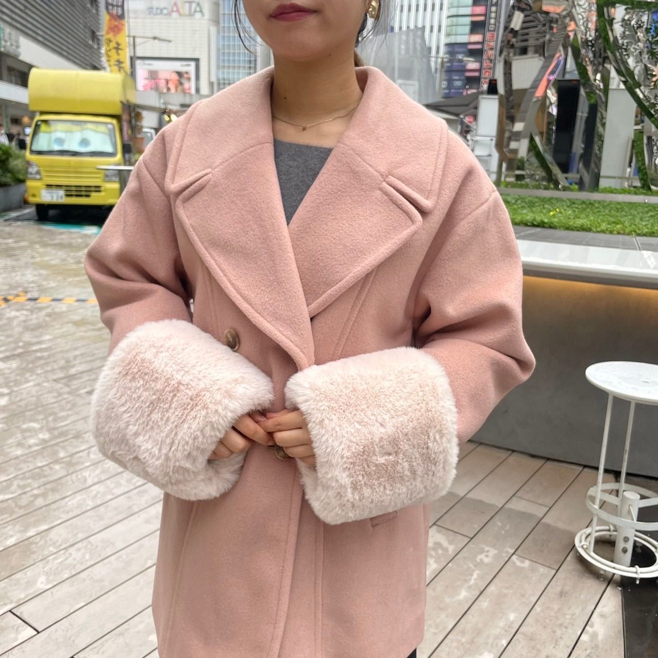 寒い冬にぴったりハーフコートෆ袖ファーダブルハーフコートෆルミネエスト新宿