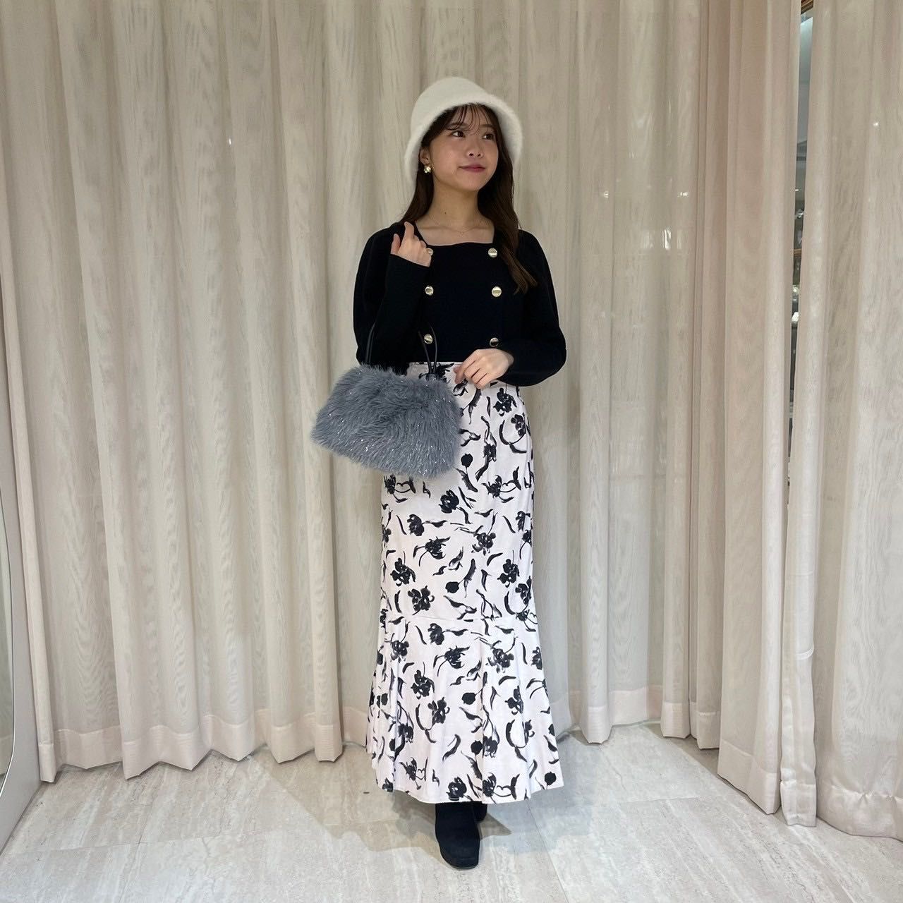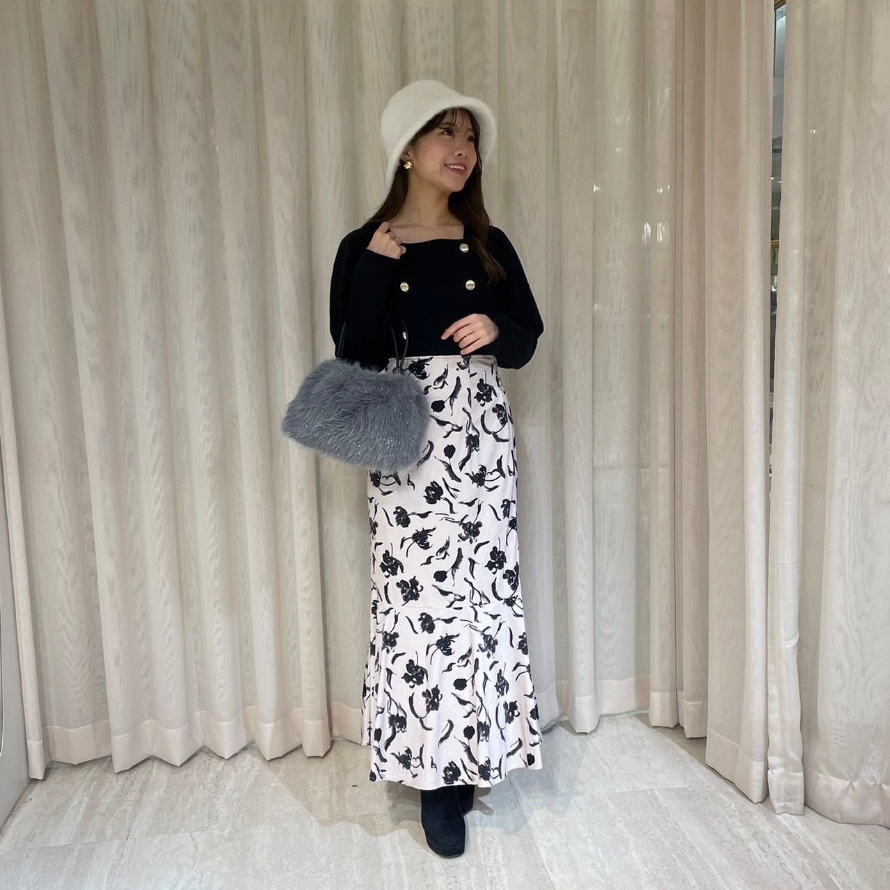 ボトムはベロアのフラワージャガードの上に花柄プリントを施した、秋冬らしい重厚感のあるスカートです✿