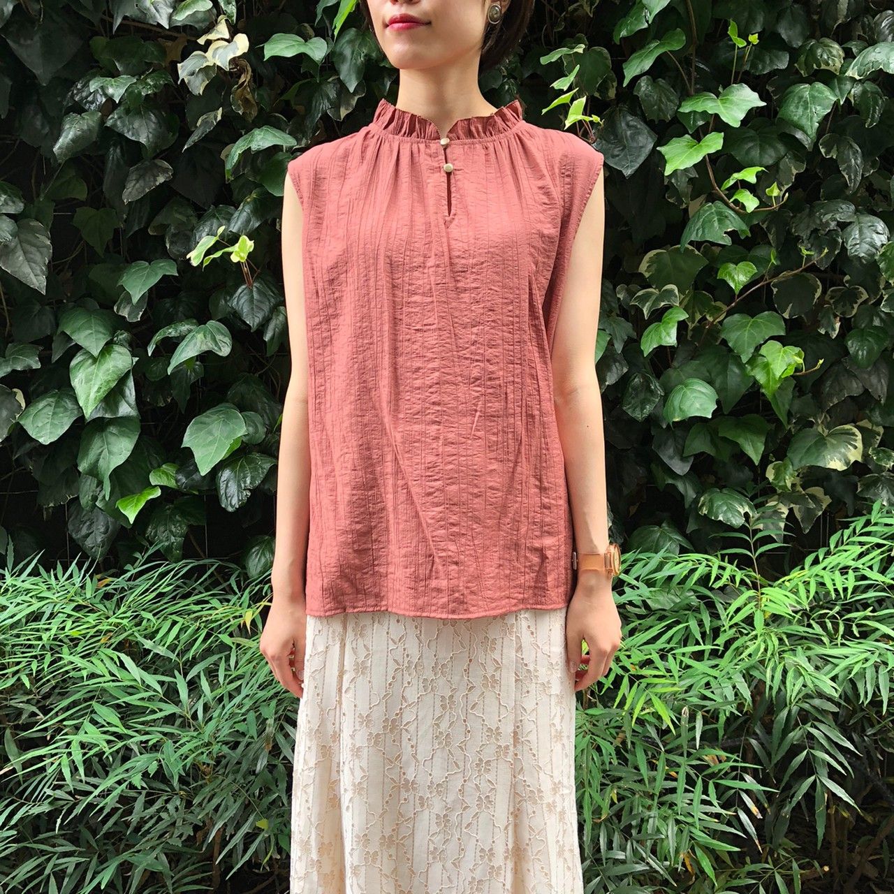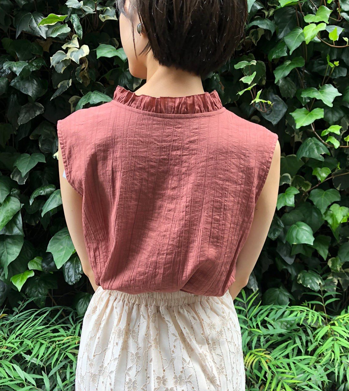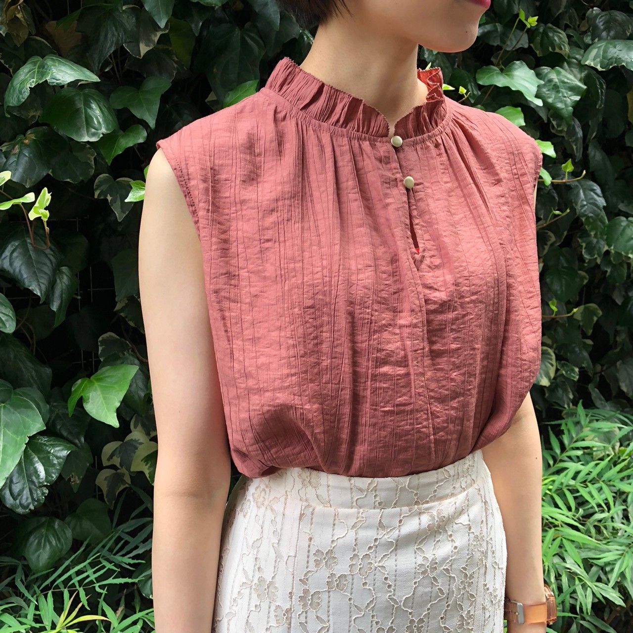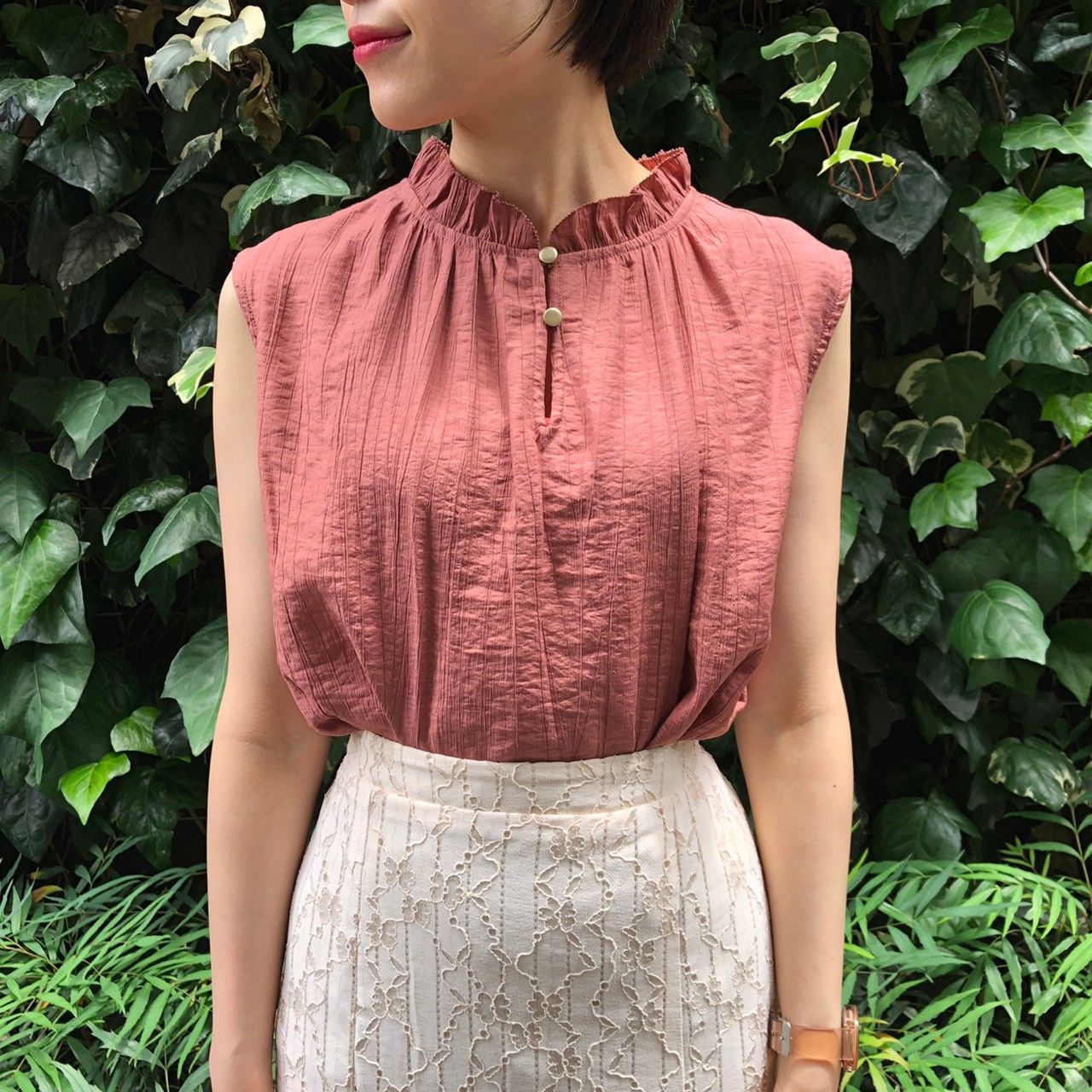 フリルネックで大人可愛い♪ノースリーブブラウス ルミネエスト新宿店