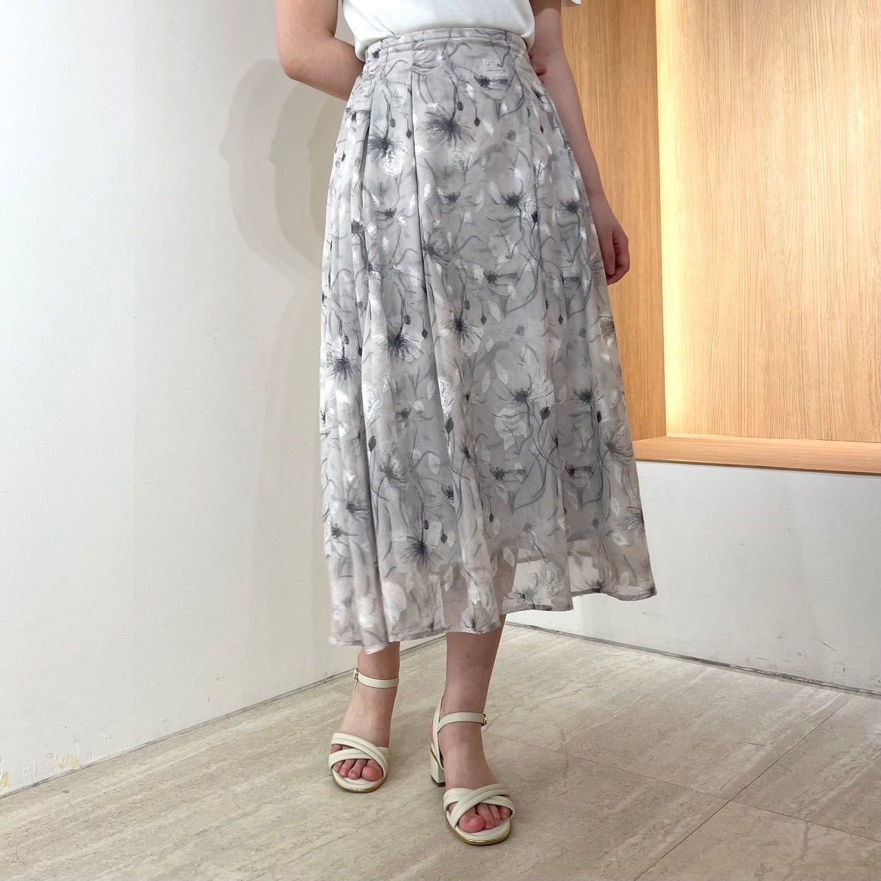 大人の印象を纏うフレアスカート✿ オパール線描き花柄フレアスカート ✿ルミネエスト新宿