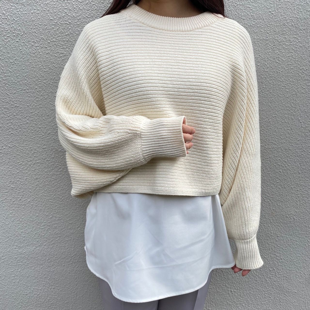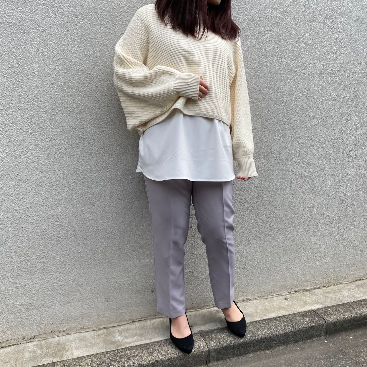 ワイトパンツよりスッキリとするテーパードパンツなどと合わせるとバランスよく着て頂けます!