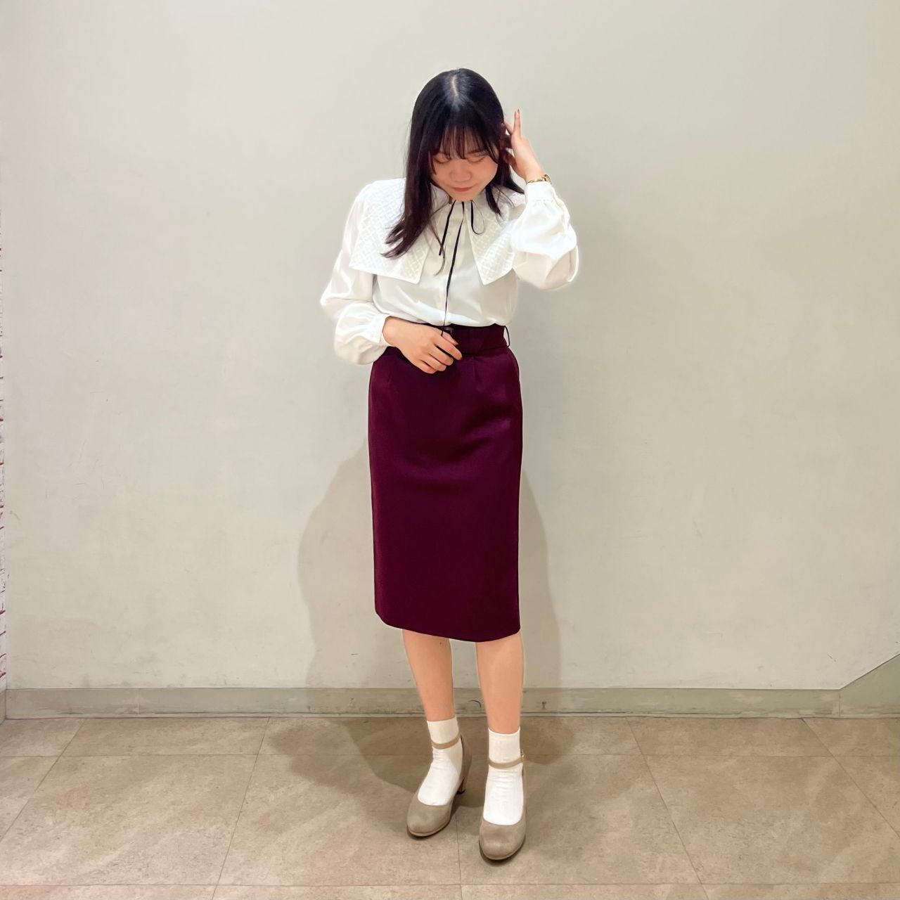 今回はボルドーのタイトスカート合わせて秋コーデにしてみました!