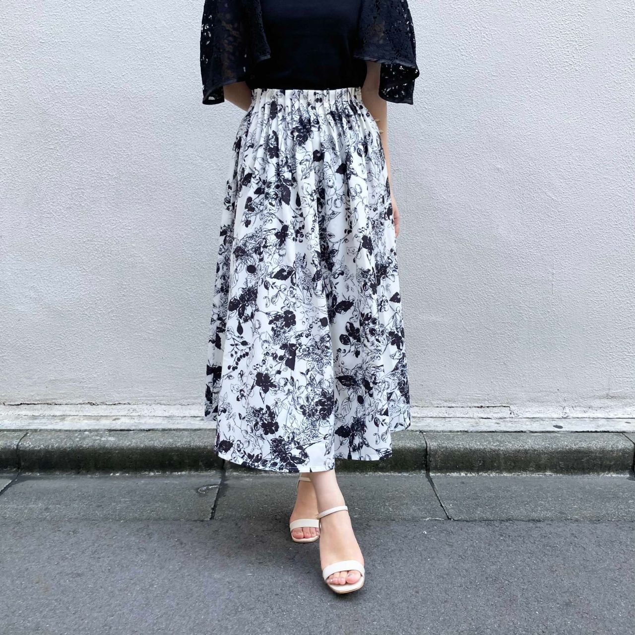モノトーンウエストゴムロングスカート
