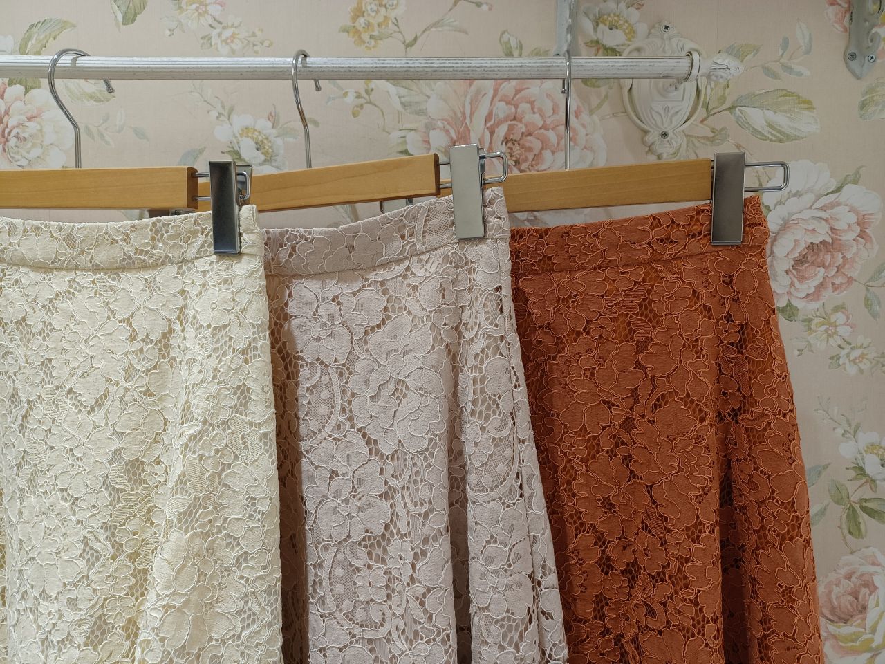 シルエットが綺麗なレースフレアスカートです!