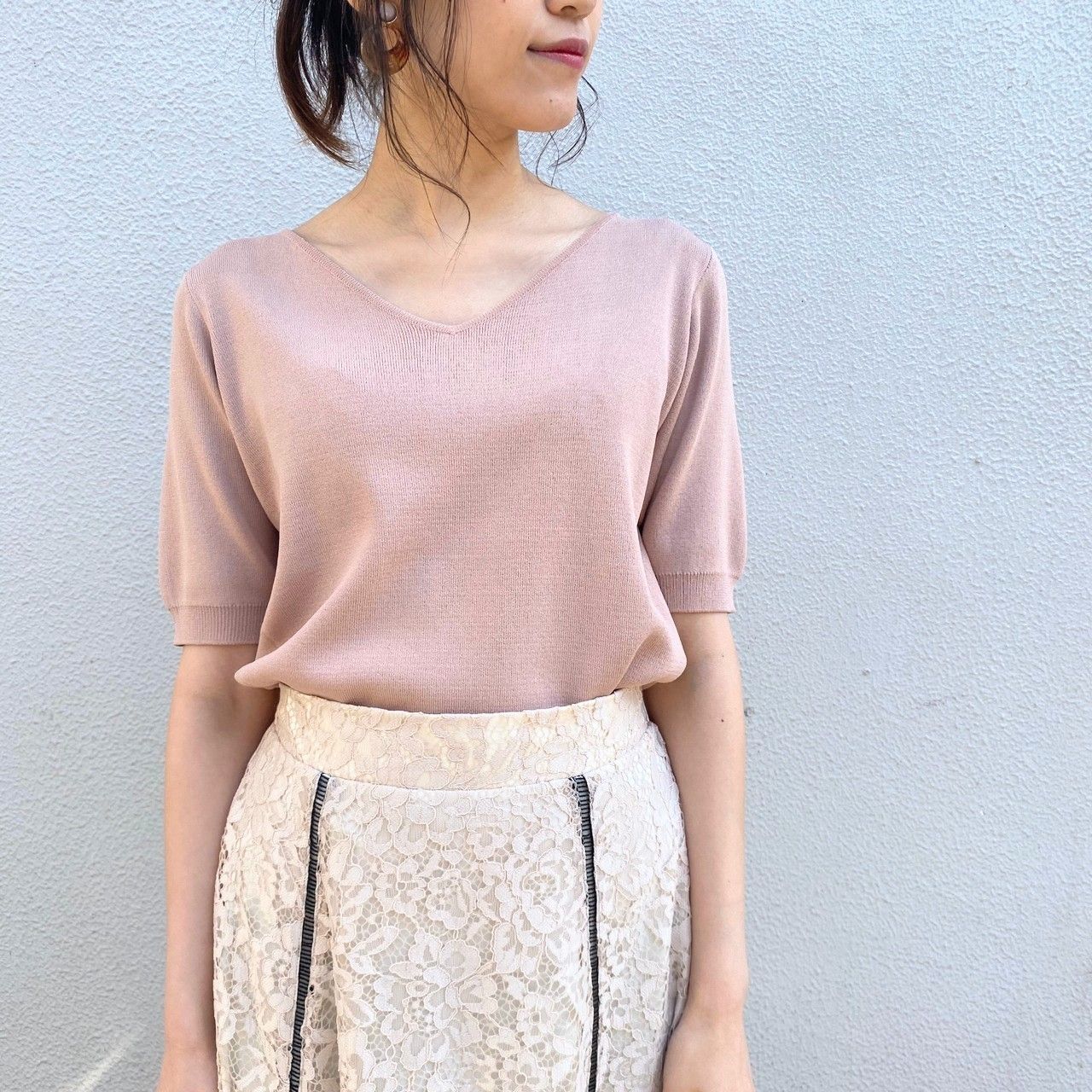 Vネックなのでシャープで