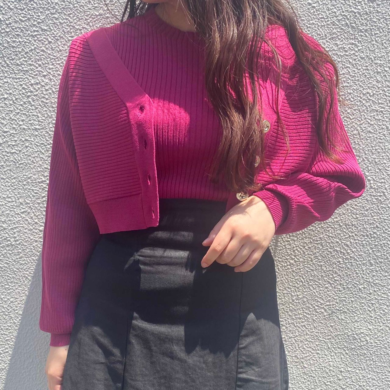 ノースリーブニットと短丈のカーディガンを合わせたオシャレニット!!