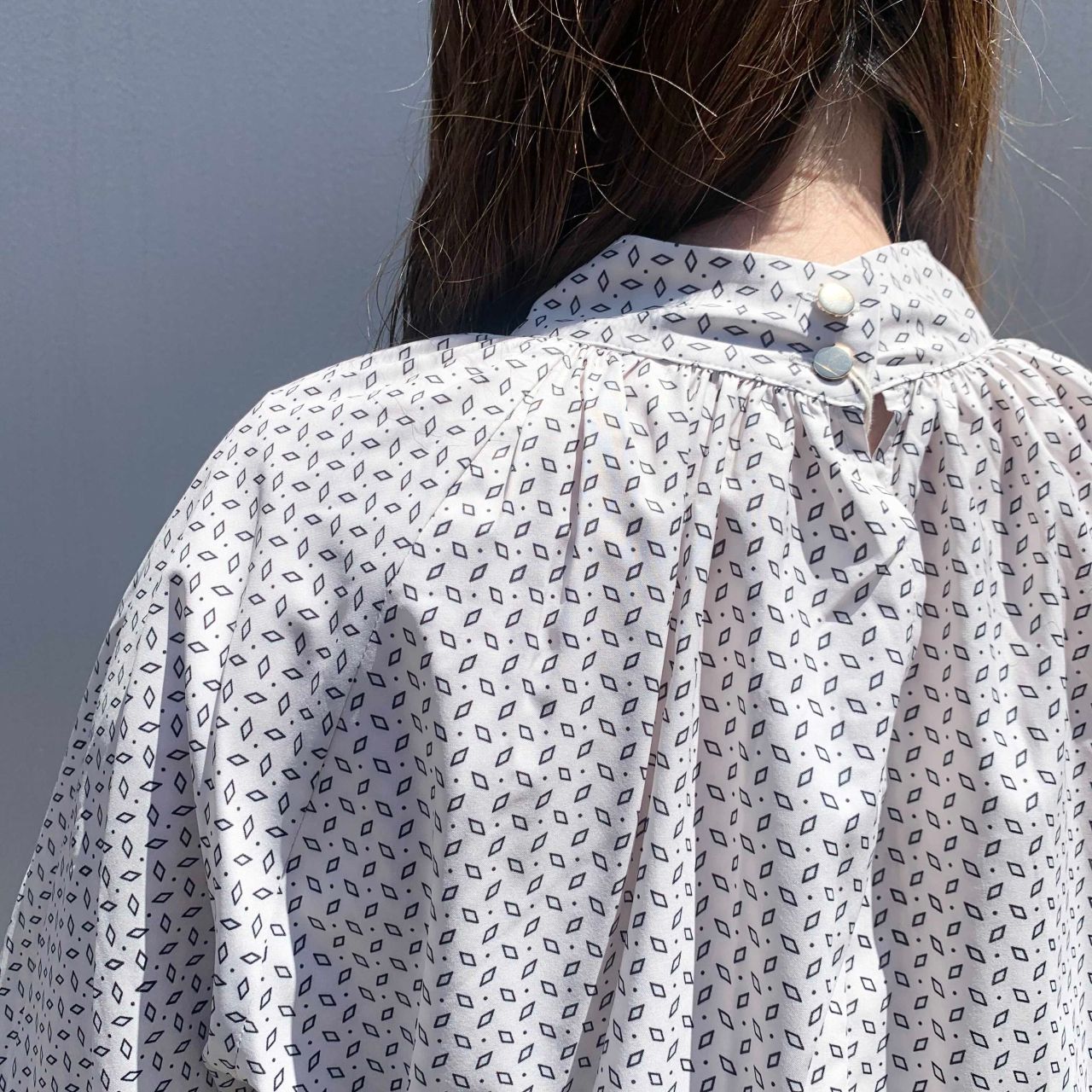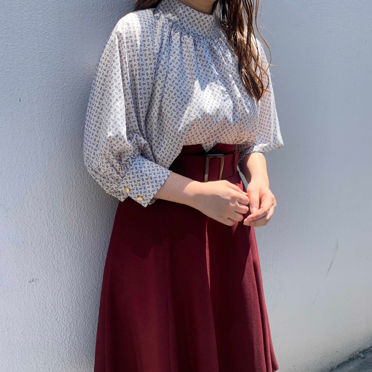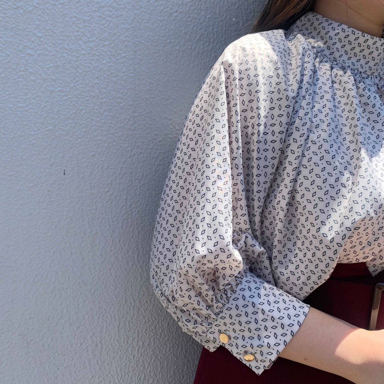 【幾何学スタンドカラーボリュームスリーブブラウス】