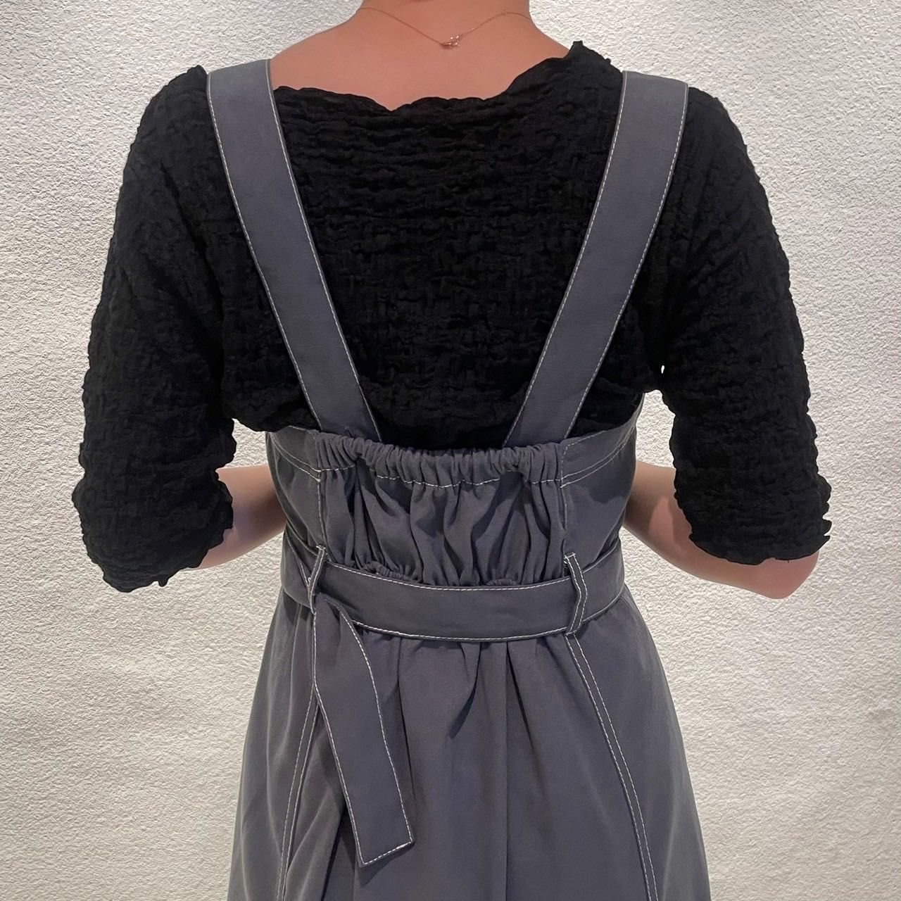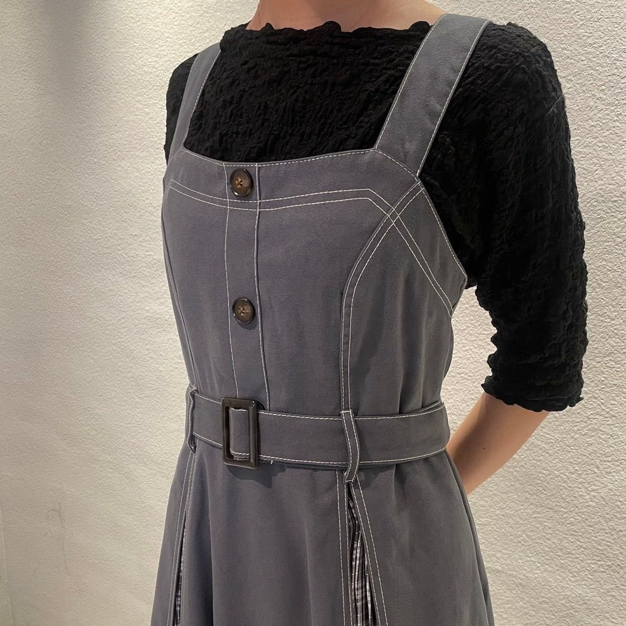 ステッチが施されているのでシンプルになりがちなジャンスカにも個性がプラス◎