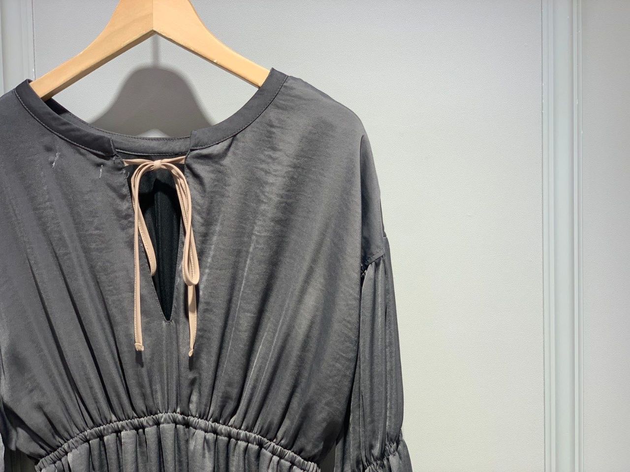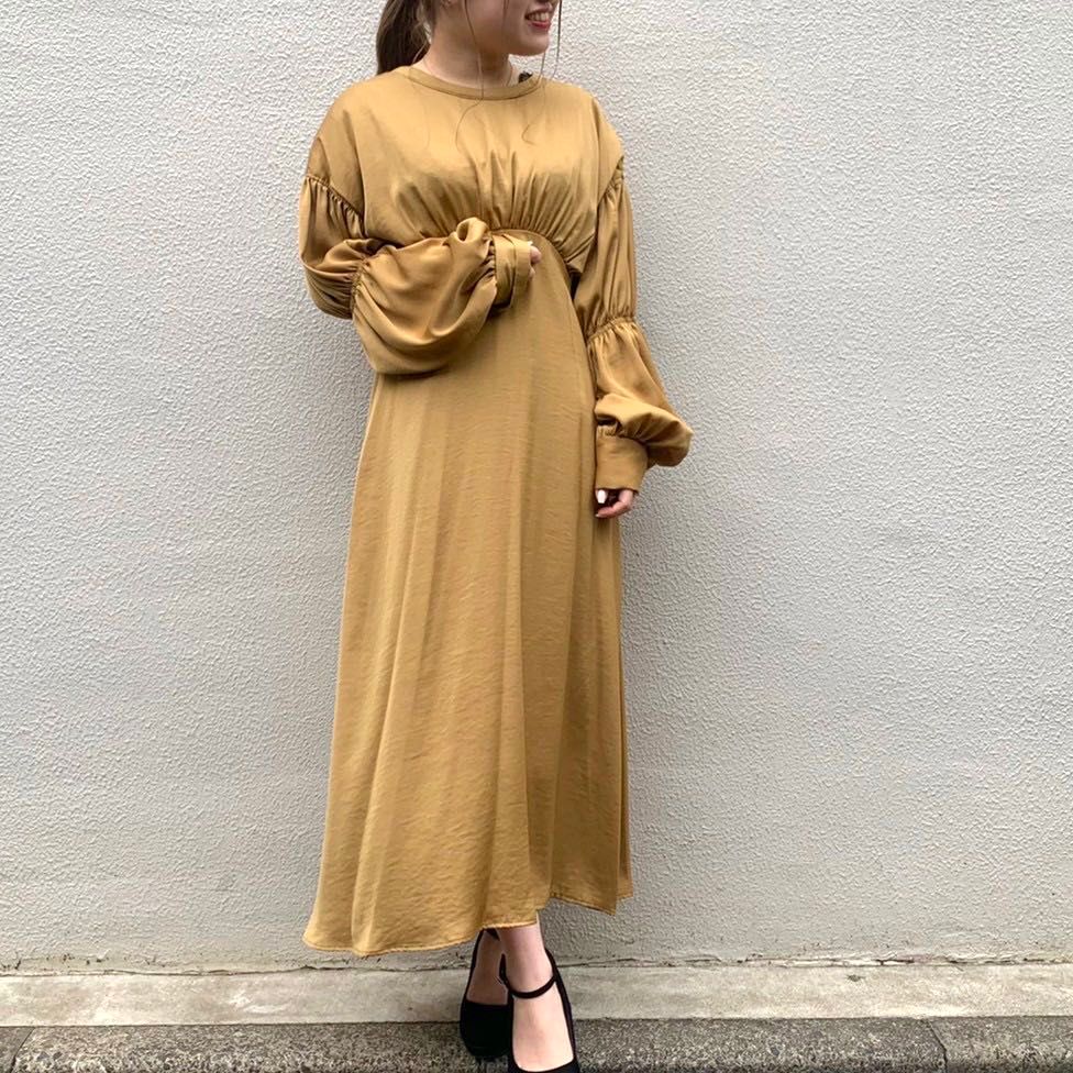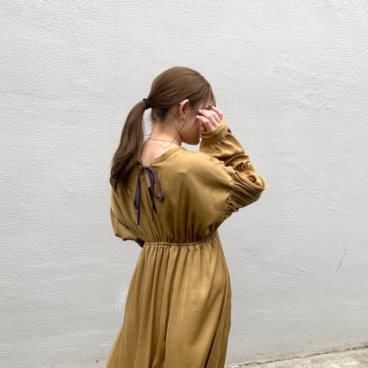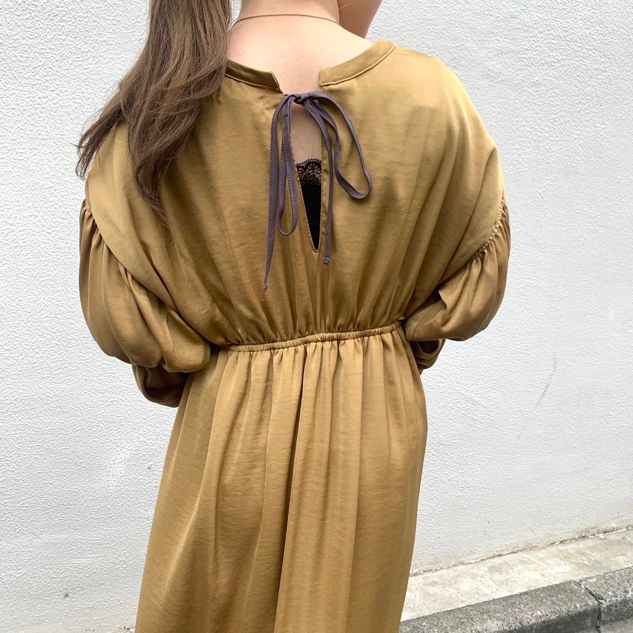 バックリボンギャザースリーブワンピース