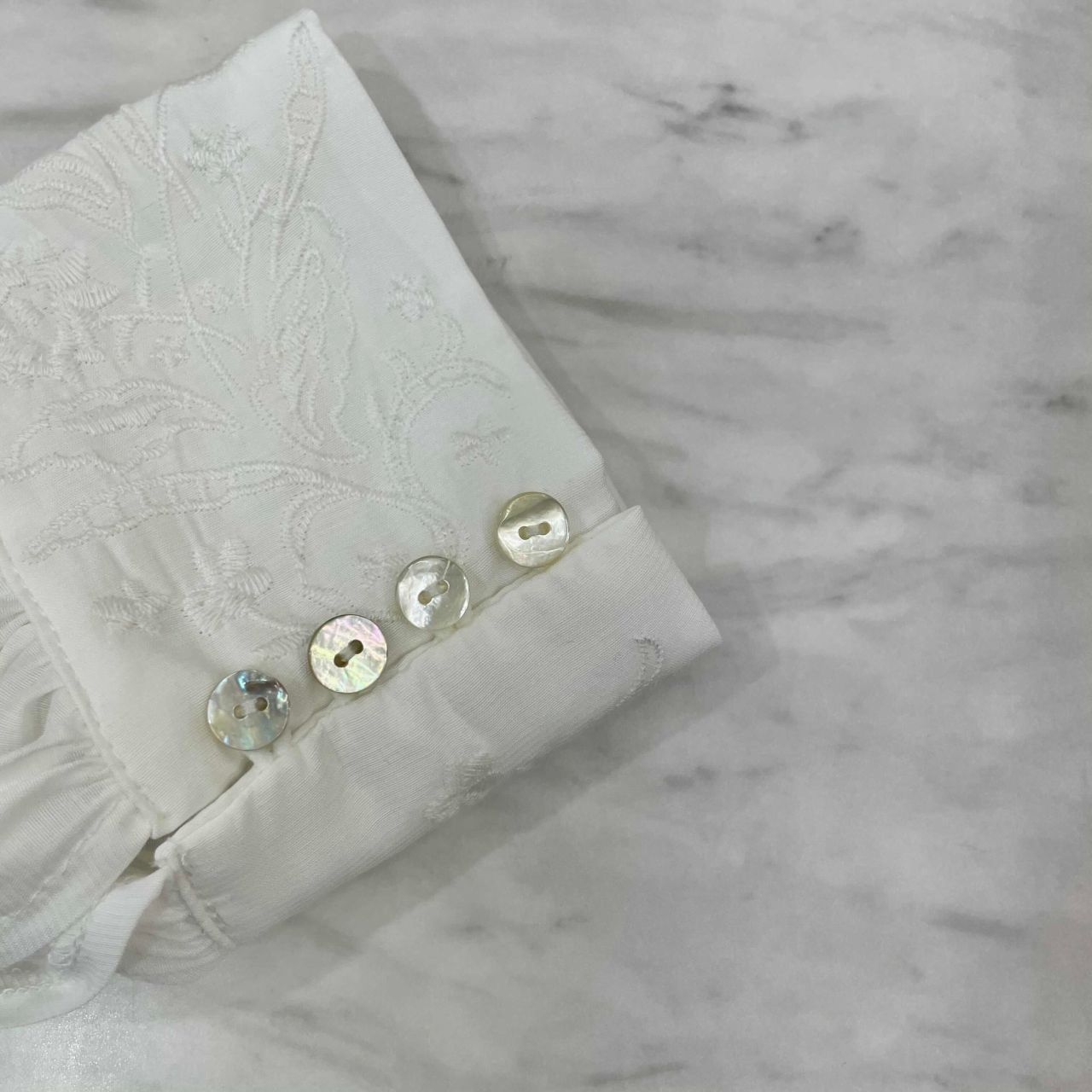 お袖の刺繍とシェルボタンもオシャレですよ♪