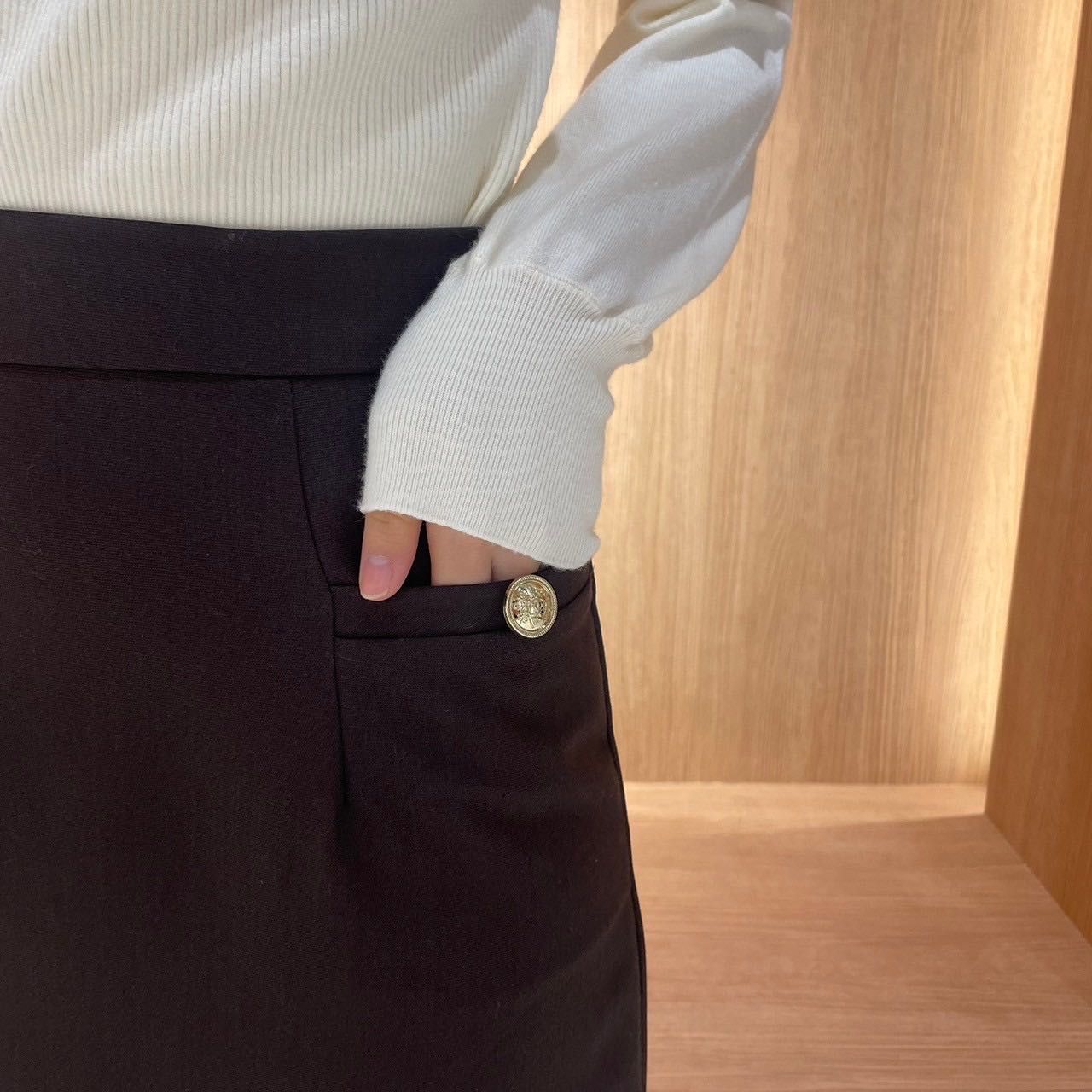 スタイルアップ効果抜群!タイトスカートෆゴールドボタンポケットタイトスカートෆルミネエスト新宿