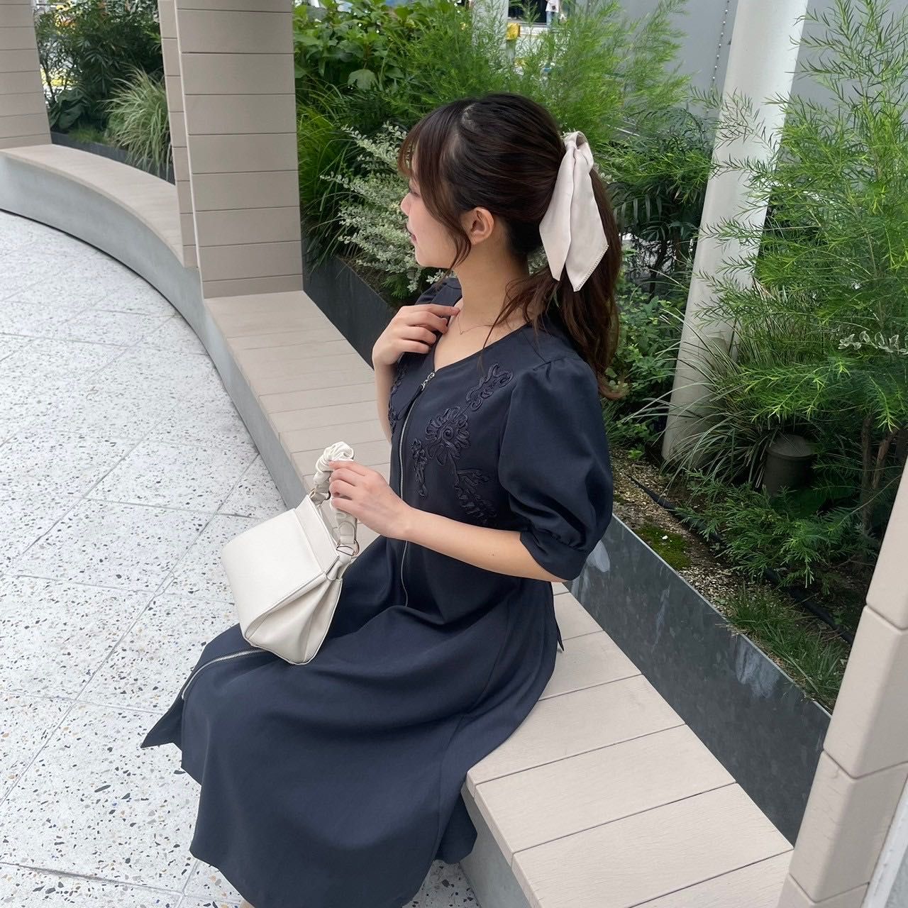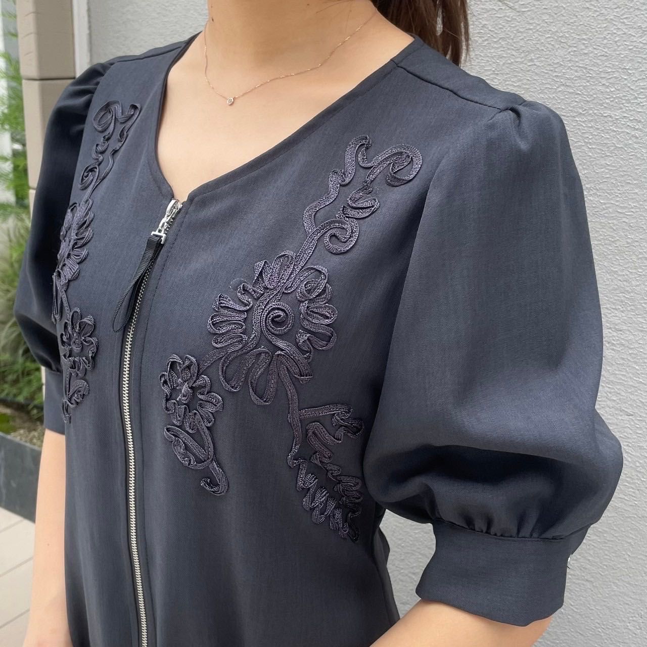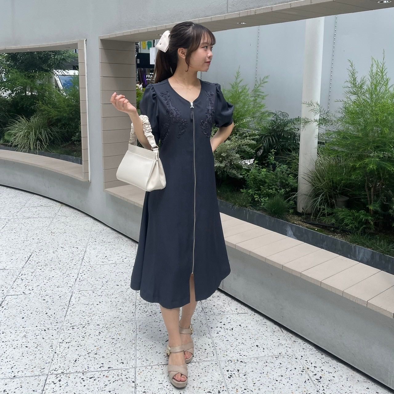 胸元のコード刺繍が上品な大人ワンピース♩