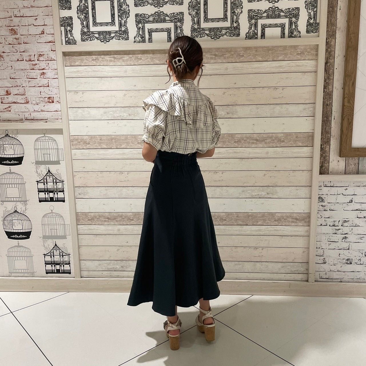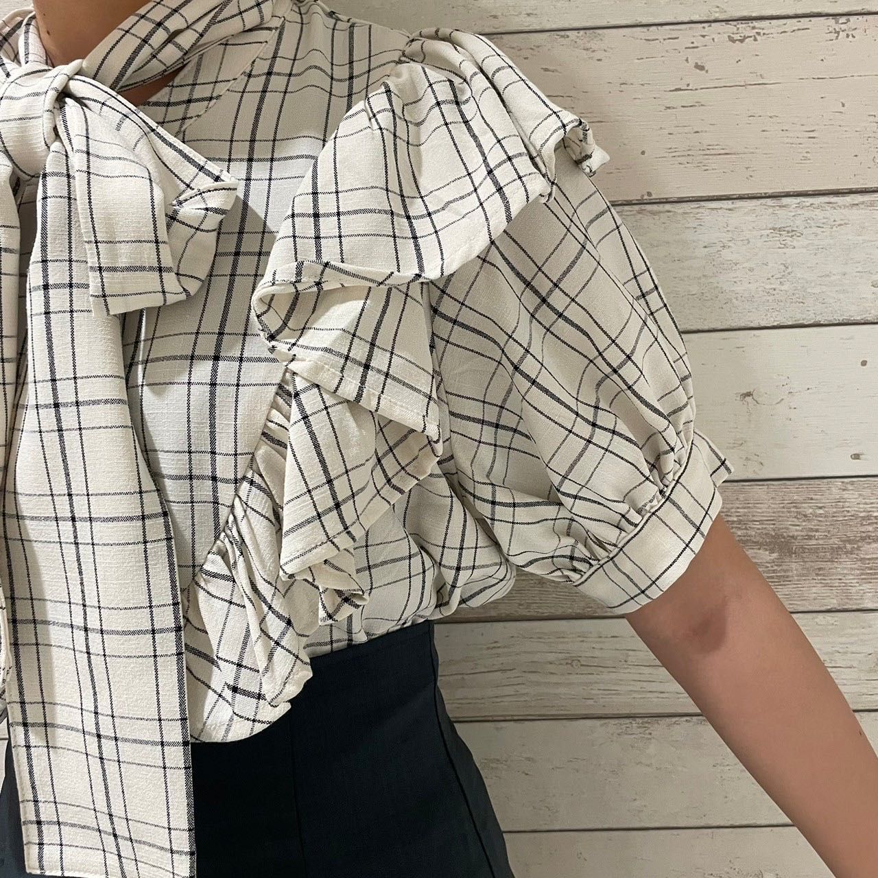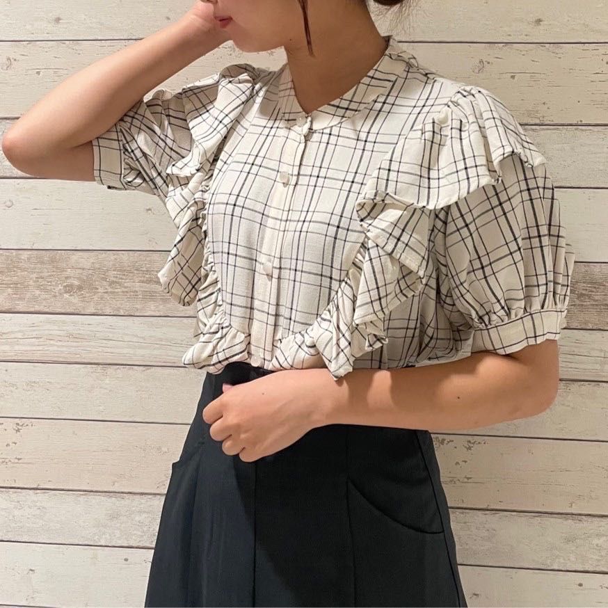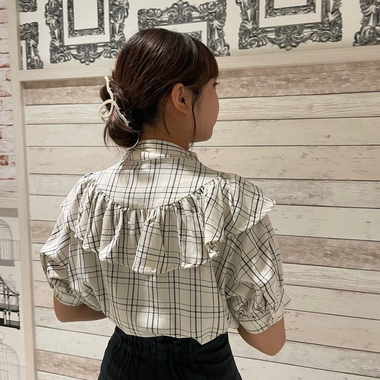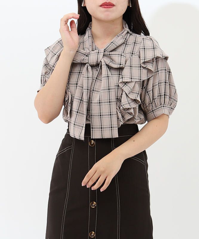 【ボウタイフリルチェックブラウス】