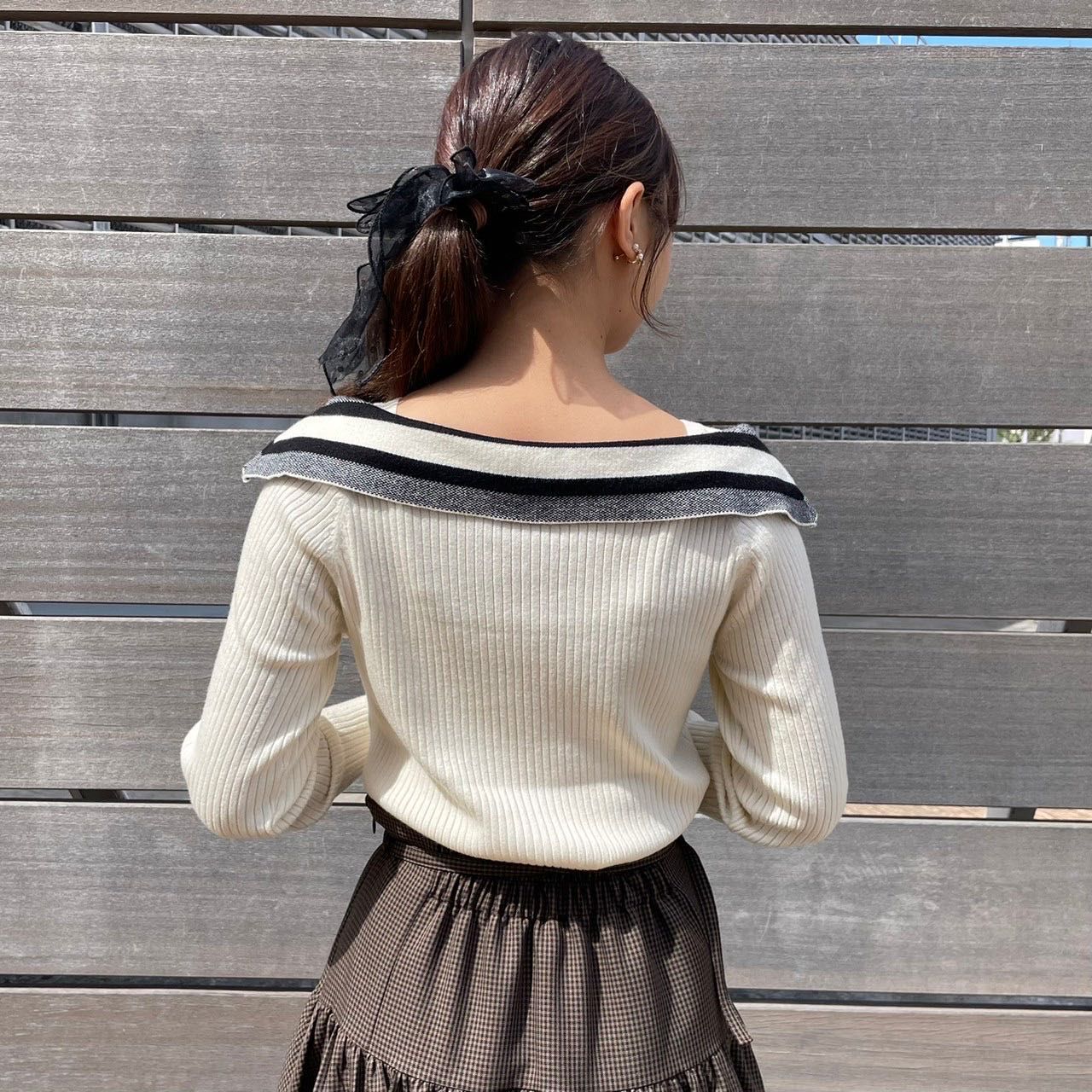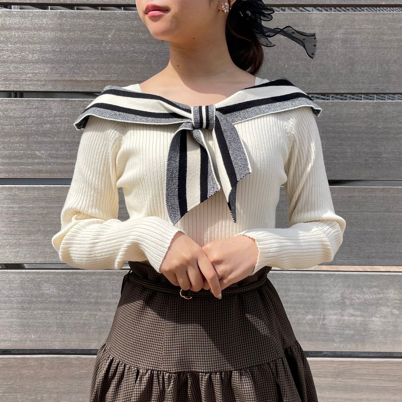 しっとり生地で着心地◎ 配色リボンショールカラーニット❤︎ルミネエスト新宿