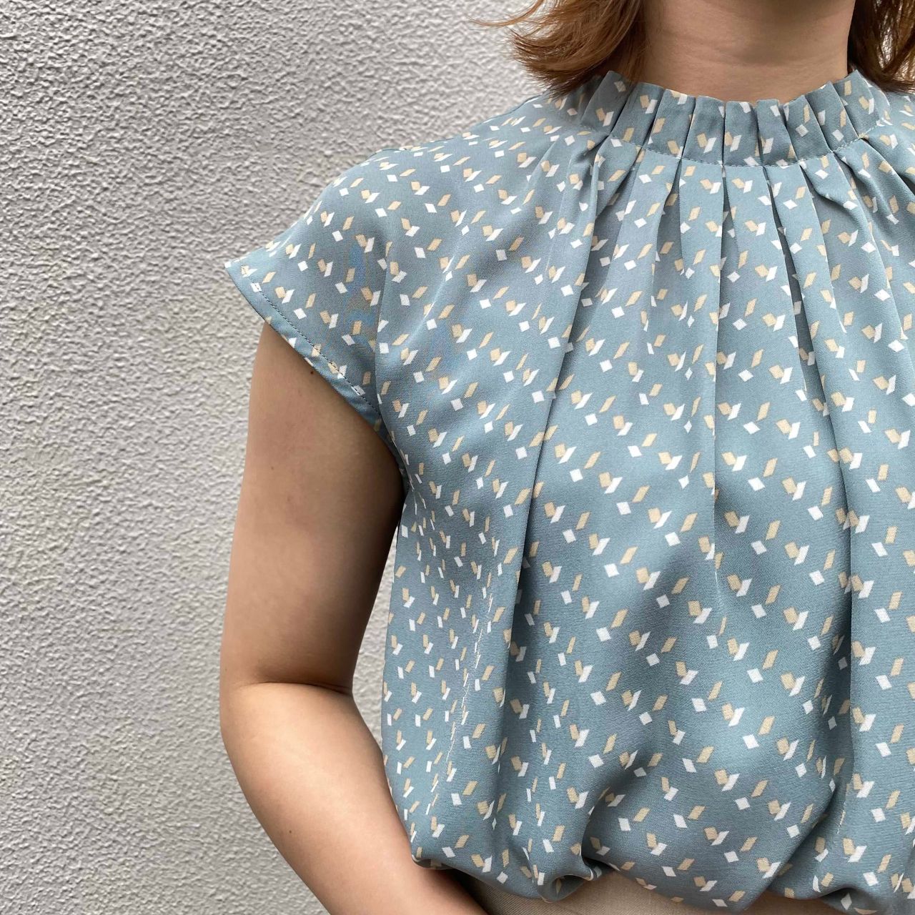 首元はタックが入っている