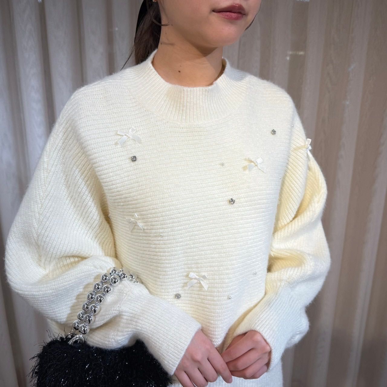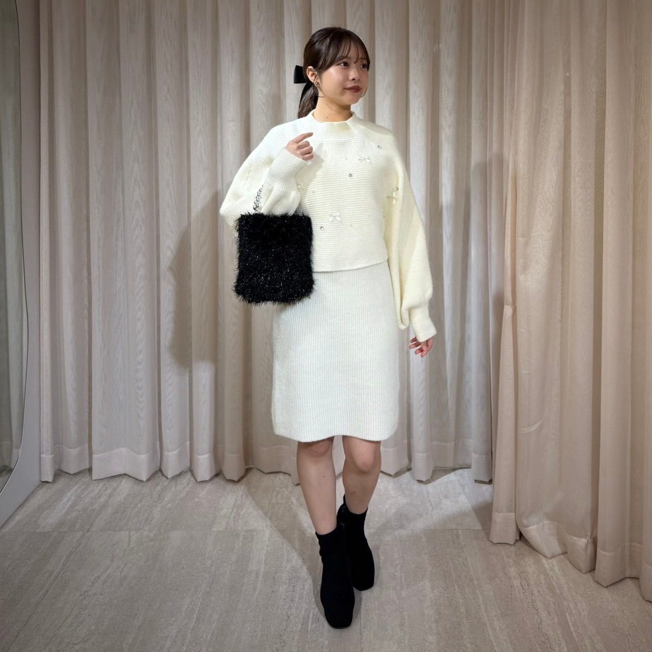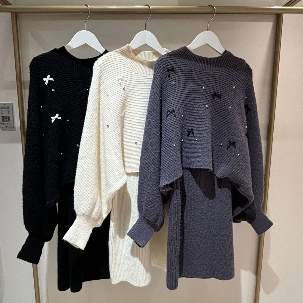 【リボンパールビジューニット×ニットワンピ】