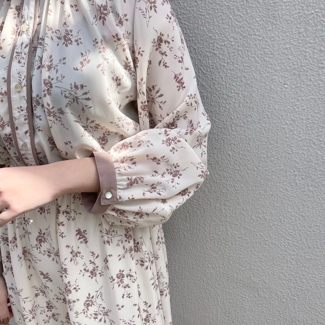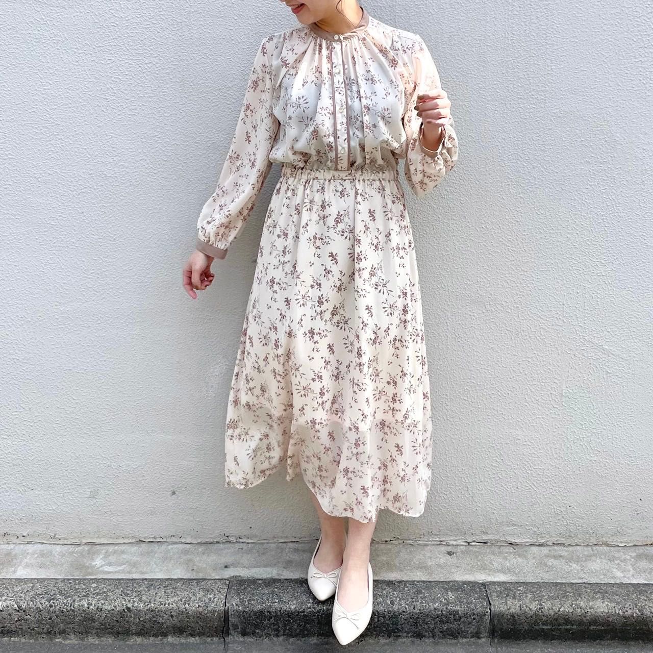 【花柄パイピングワンピース】