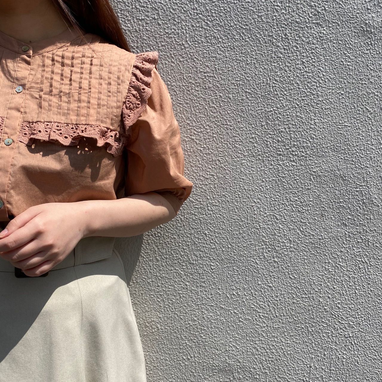 肩部分のフリルなふんわりとした袖で