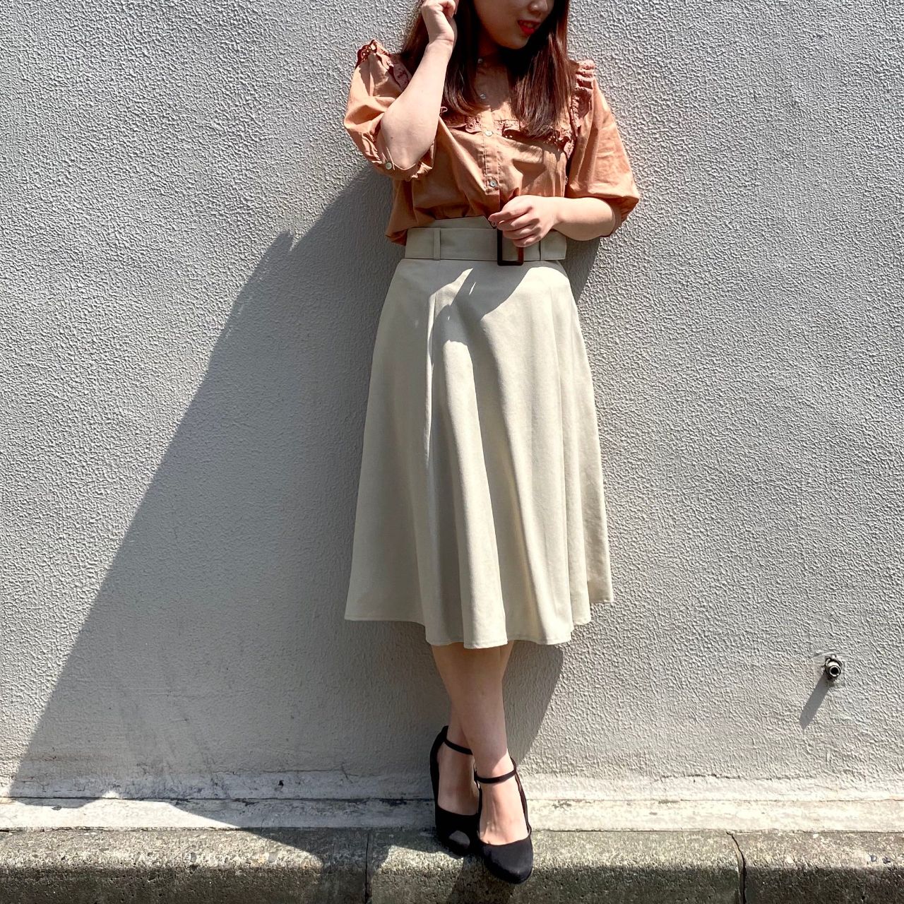 フレアスカートで可愛らしく合わせたり