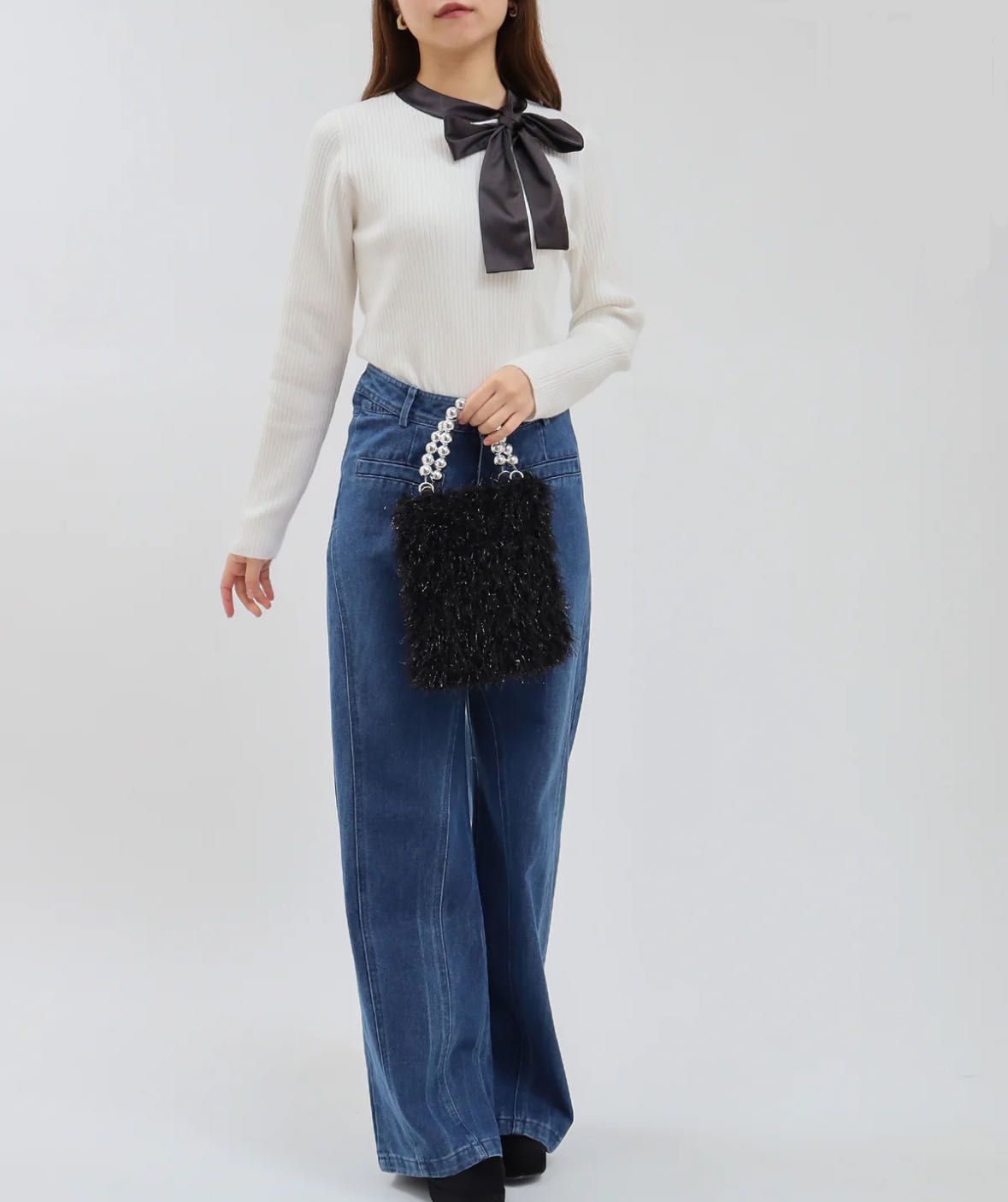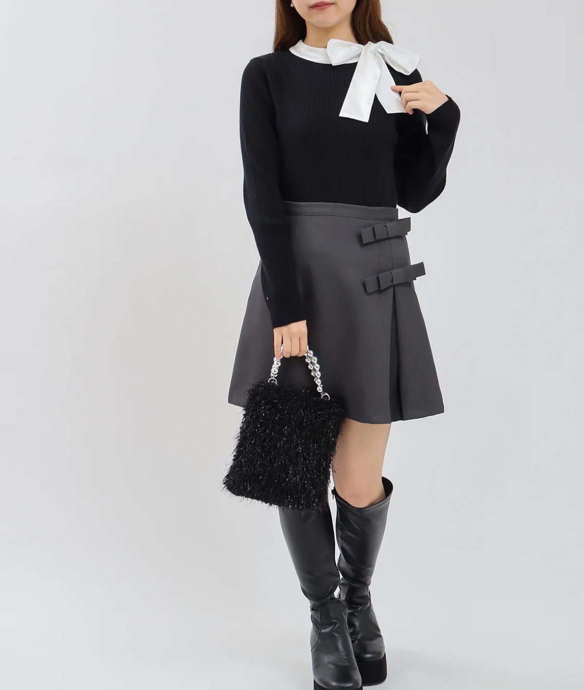 旬のスタイリングが完成するサテンリボンデザインニット♪