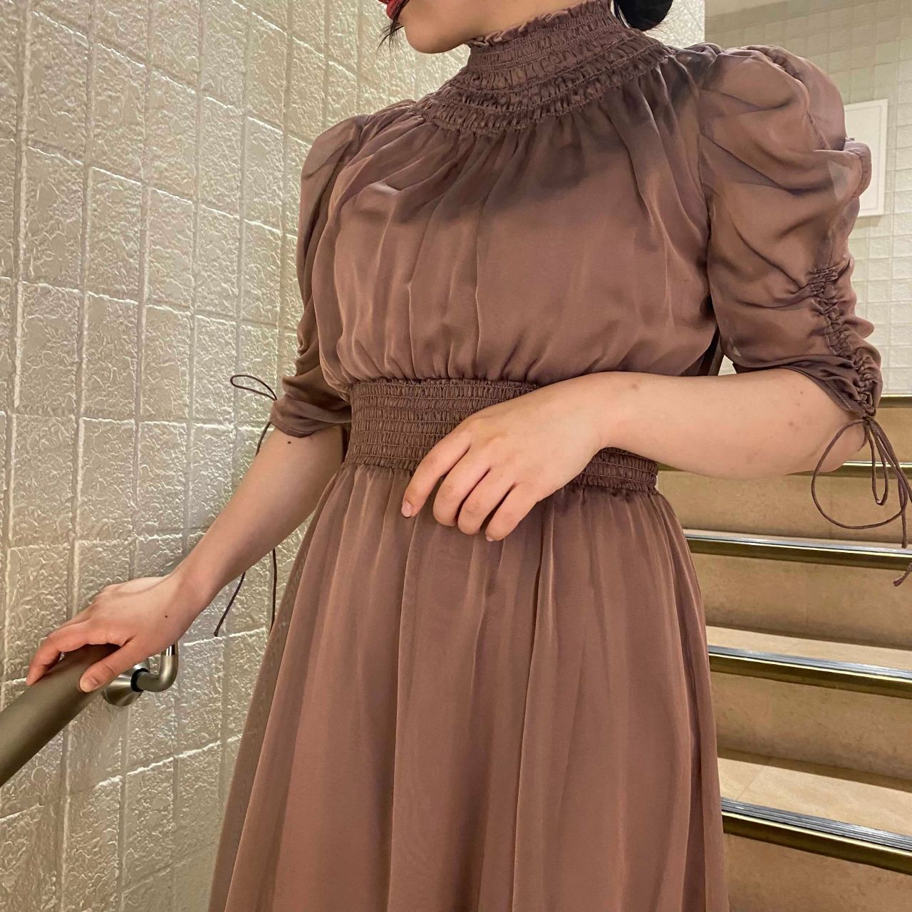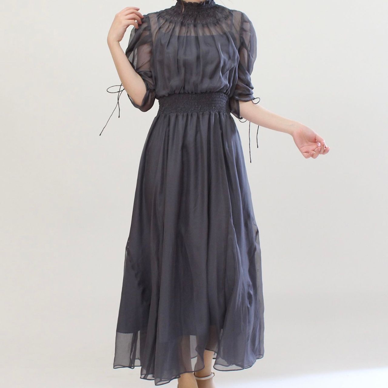 オーロラシフォンシャーリングワンピースドレス