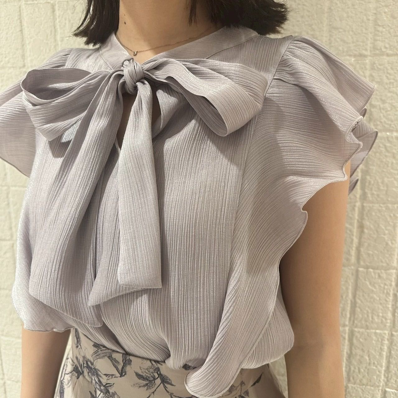 ラメ楊柳ボウタイフリルブラウス(接触冷感)