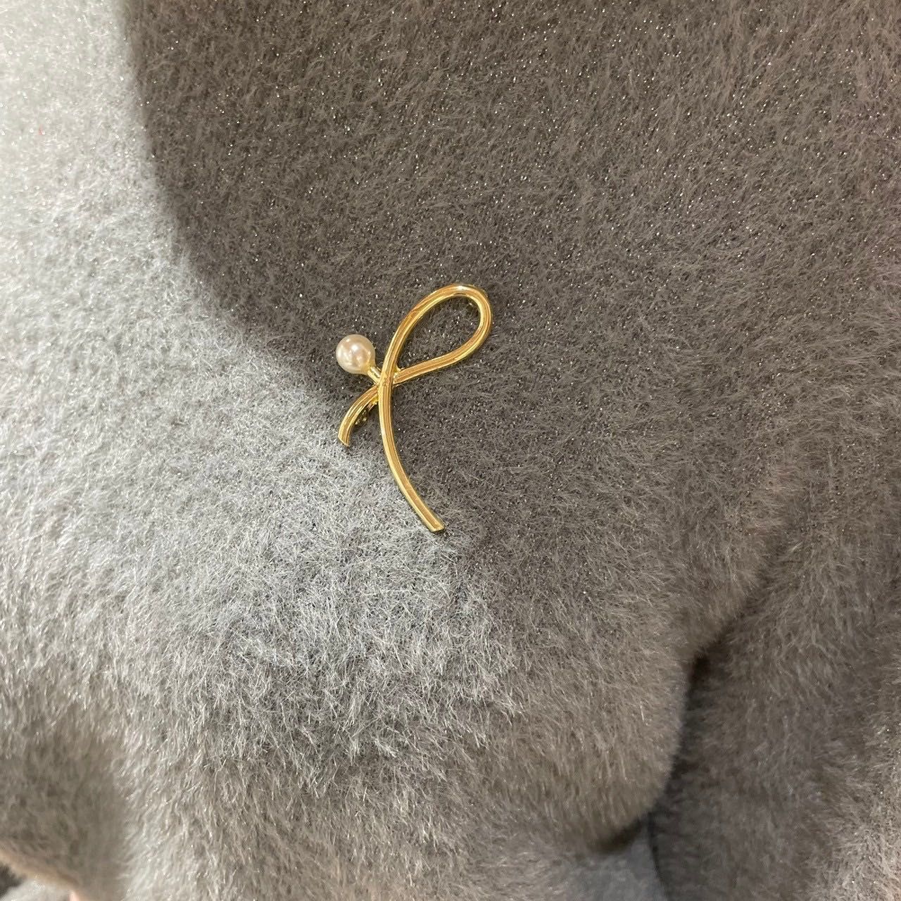 ゴールドのブローチが付いた魅力惹き立つフェザーヤーンニットプルオーバーです❤︎