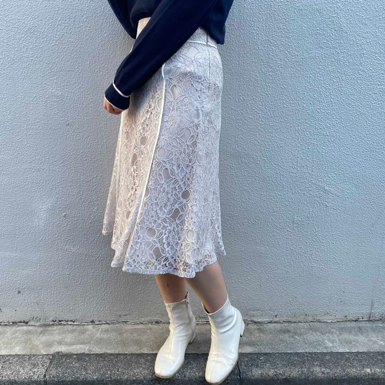レースパイピングハギフレアスカート
