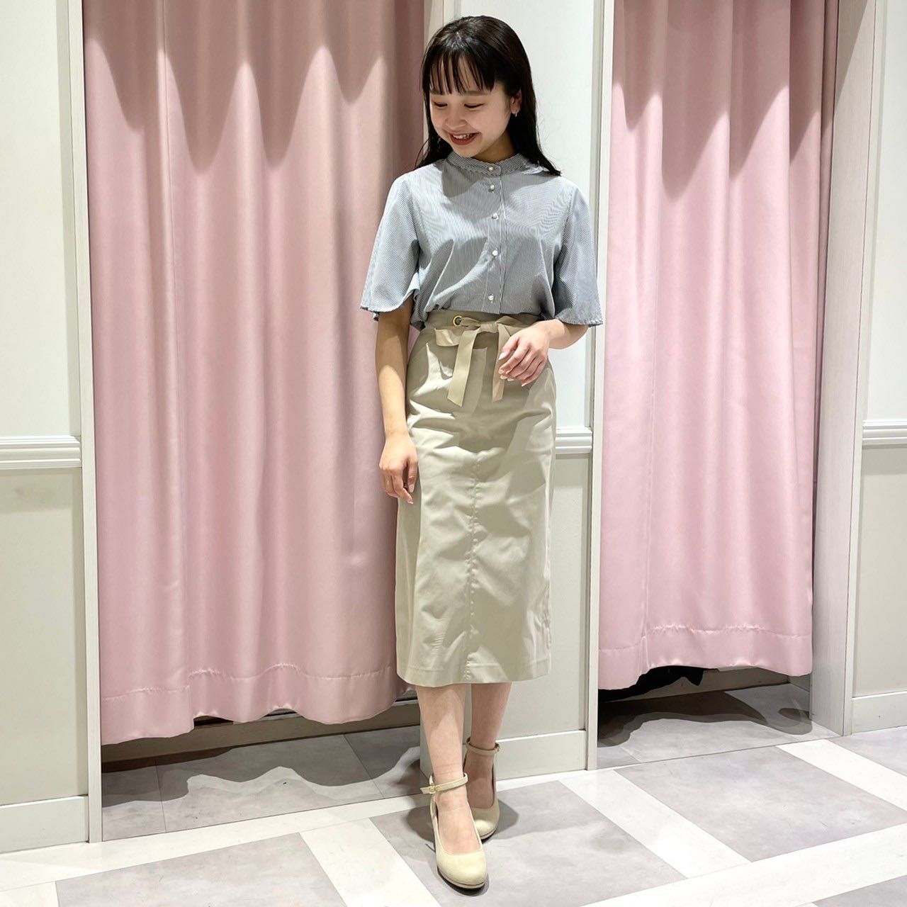 お袖がふんわりとしていますのでタイトスカートを合わせるとバランスがいいですよ◎