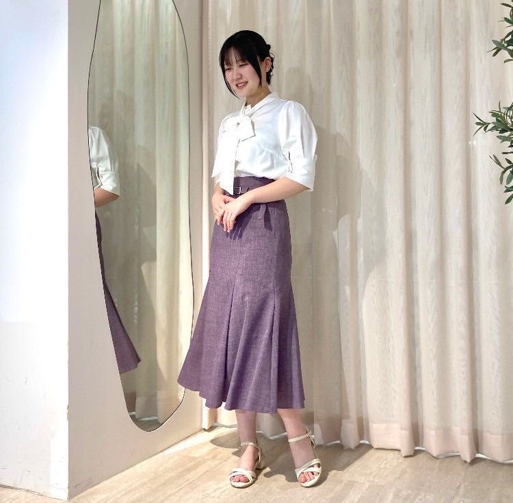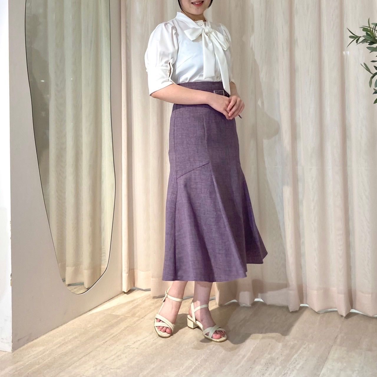 自然な揺らめきと美しいシルエットをキープでき、品のあるカラーリングのブッチャー生地を使用し、ワンランク上の上品スカートスタイルに仕上げてくれます⟡.·