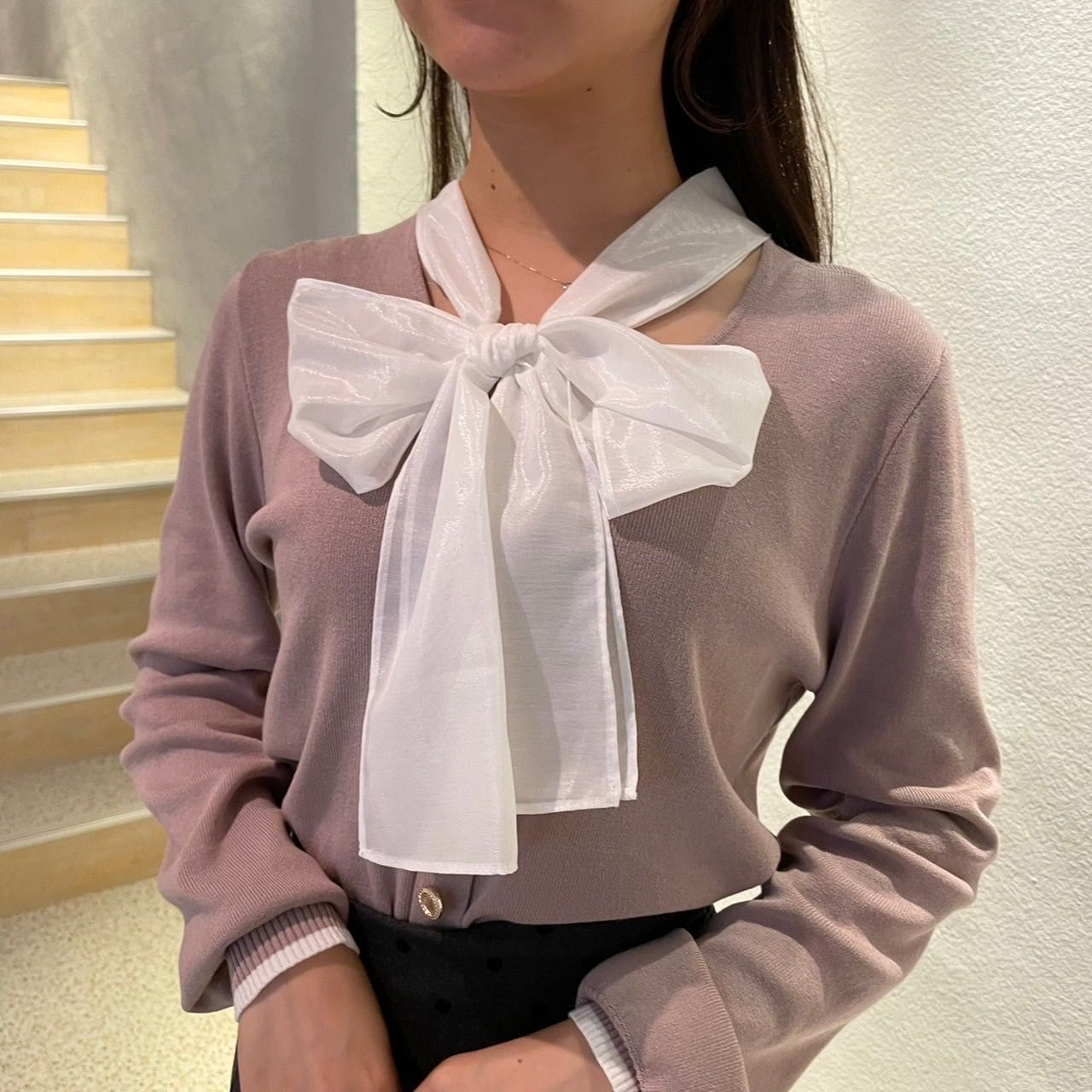 【オーガンジーリボンニット】
