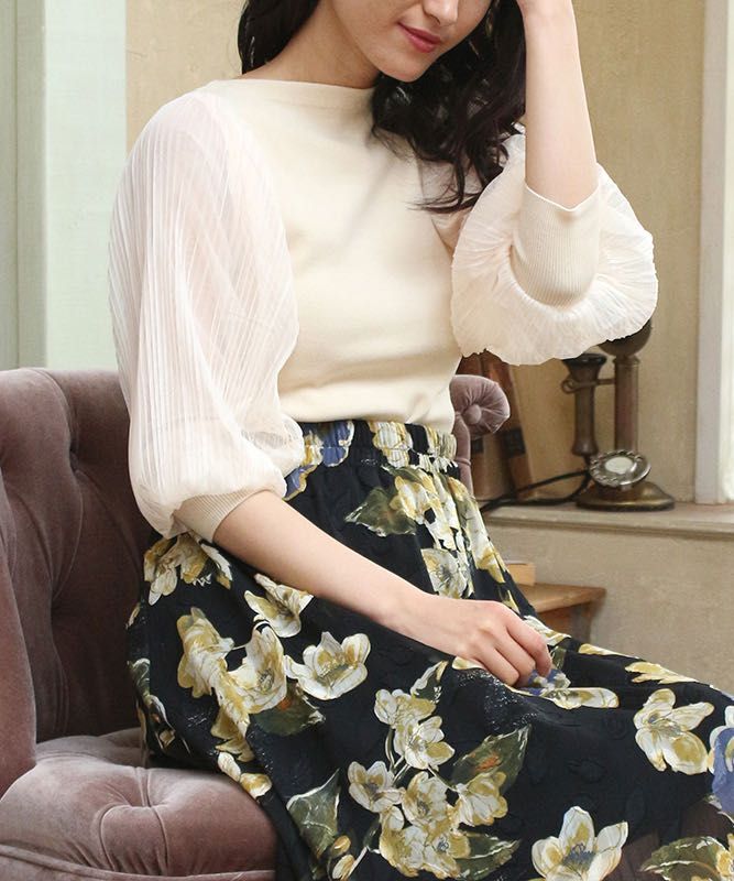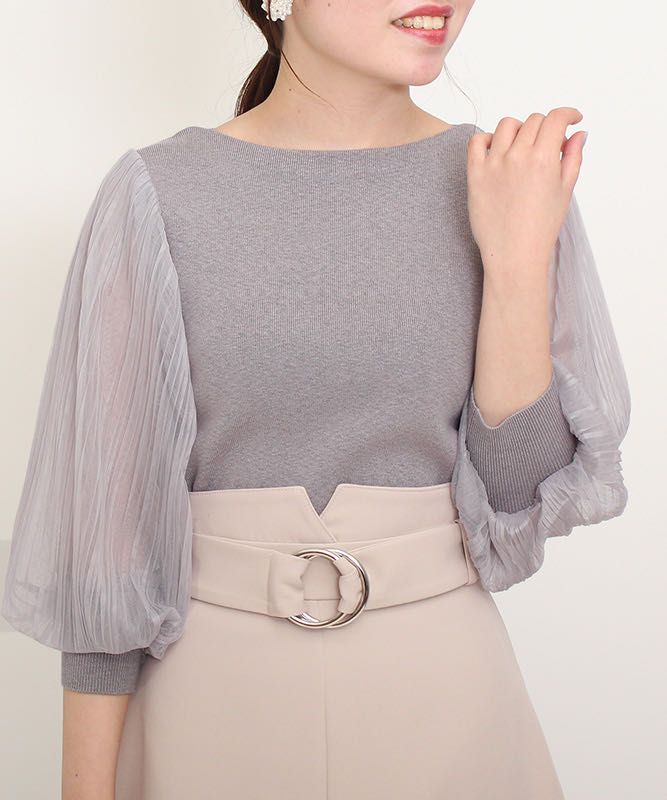 ふんわりしたチュールスリーブが可愛いニットは