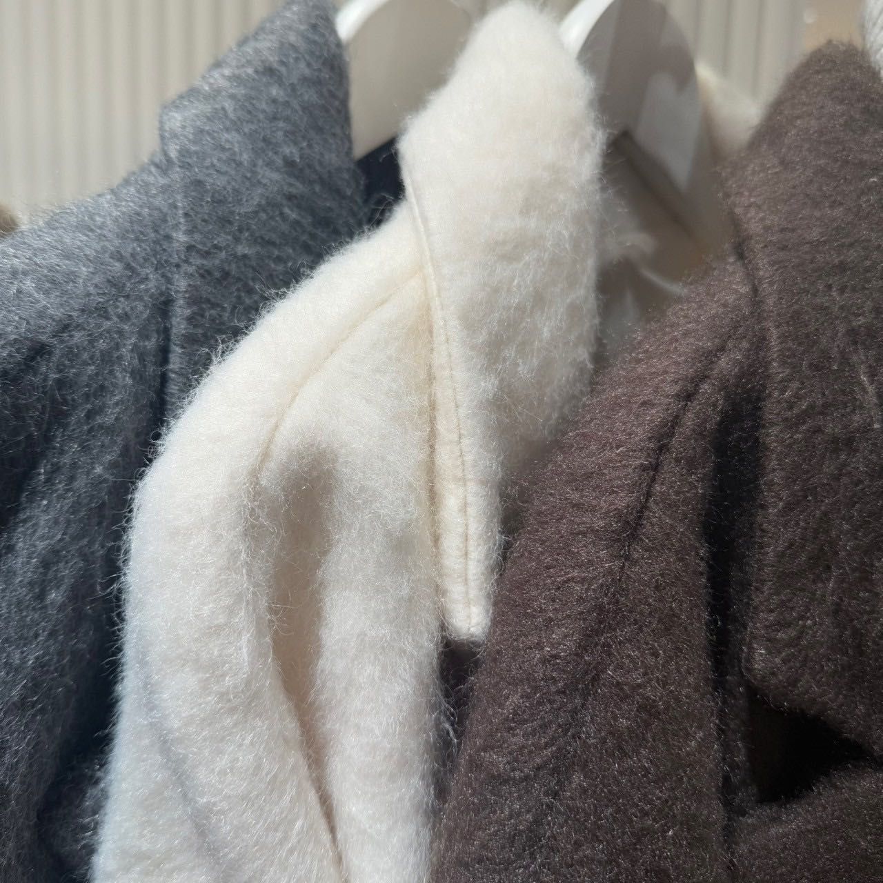 また大きめの襟とオーバーサイズデザインが上品さ演出しつつ、小顔効果にもなります⟡.·