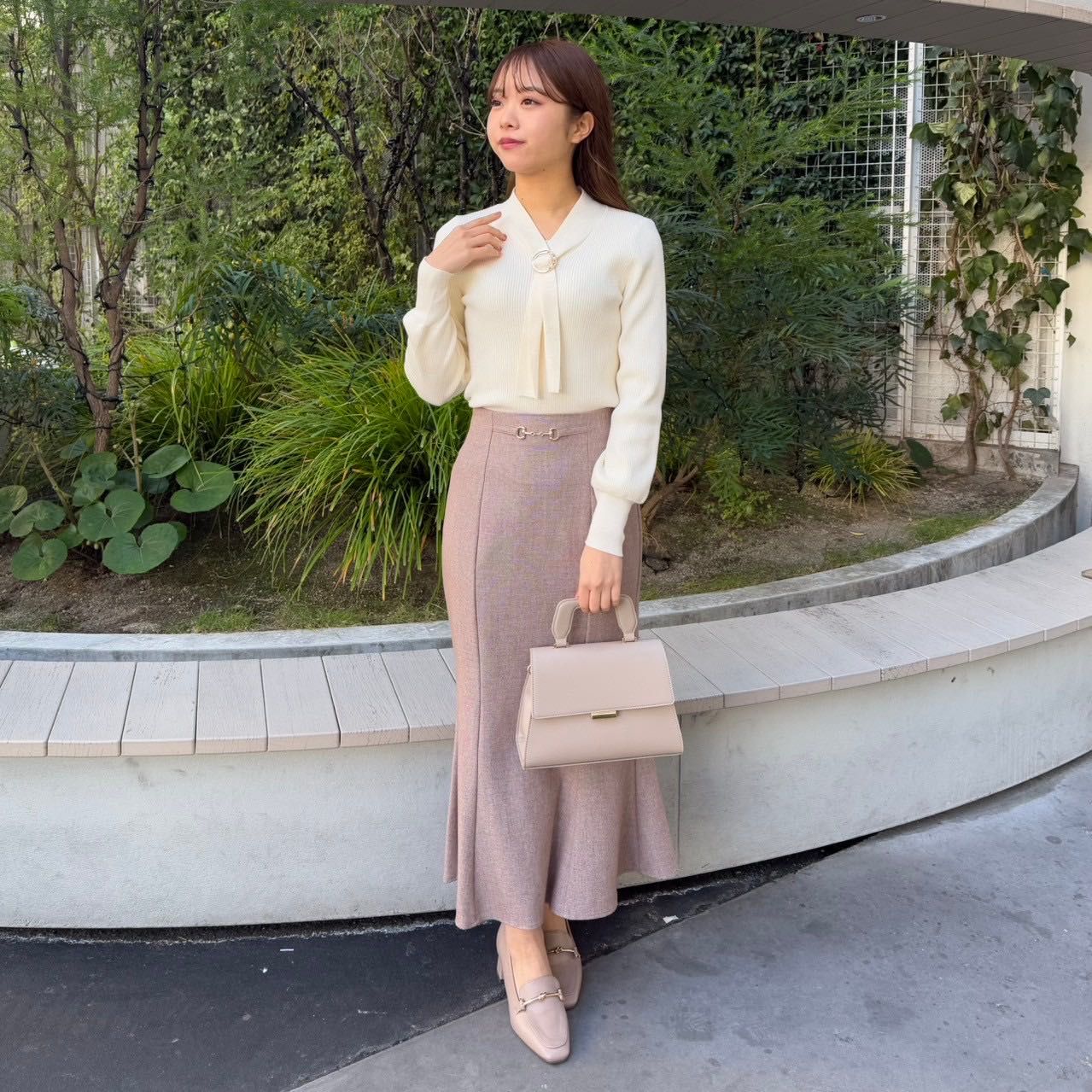 こなれ感溢れるオンオフ兼用ニットෆ金具リングボウタイニットෆルミネエスト新宿
