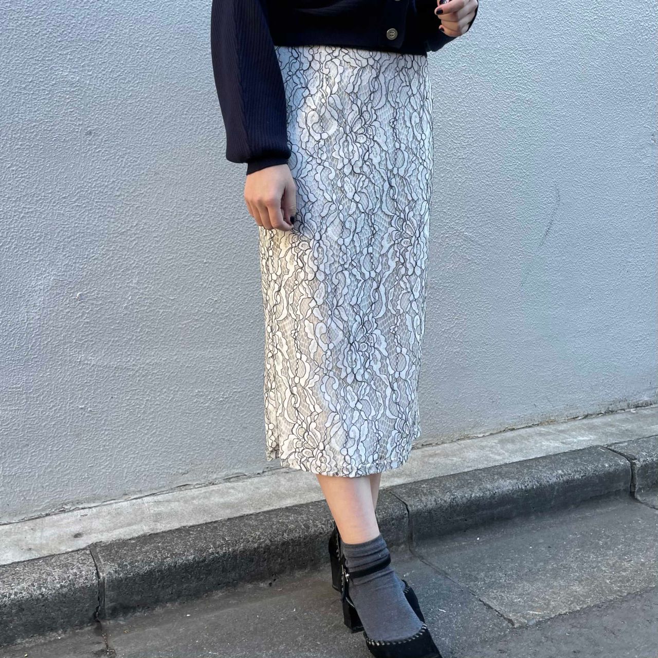 程よい丈感で、大人の女性らしいスタイリングが決まる総レーススカートです!