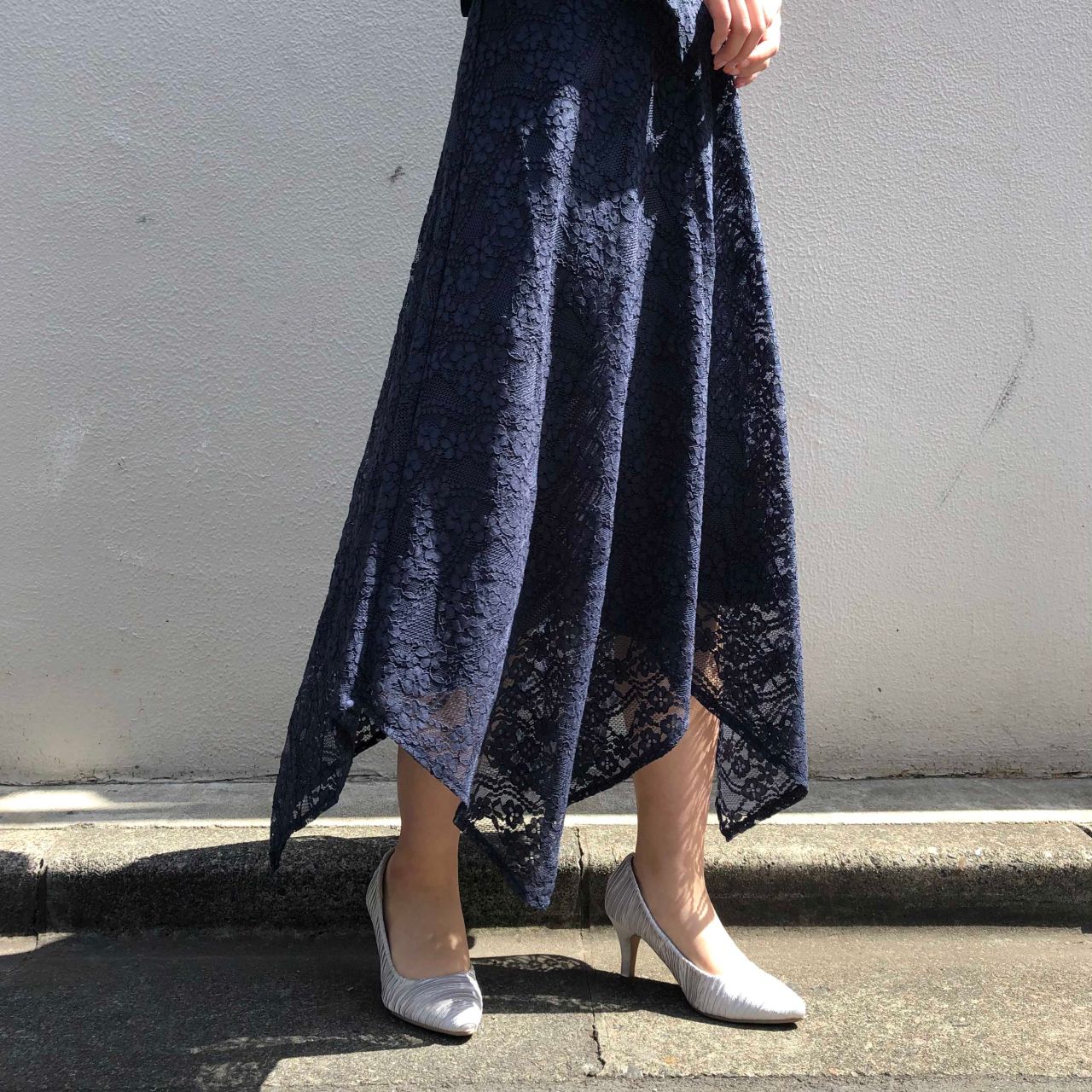 裾はイレギュラーヘムカットで