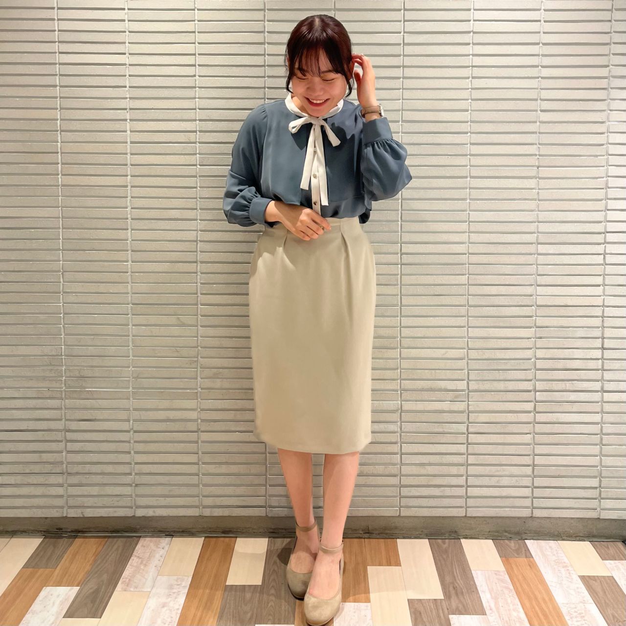 今回はベージュのタイトスカートと合わせてオフィスコーデにしてみました!