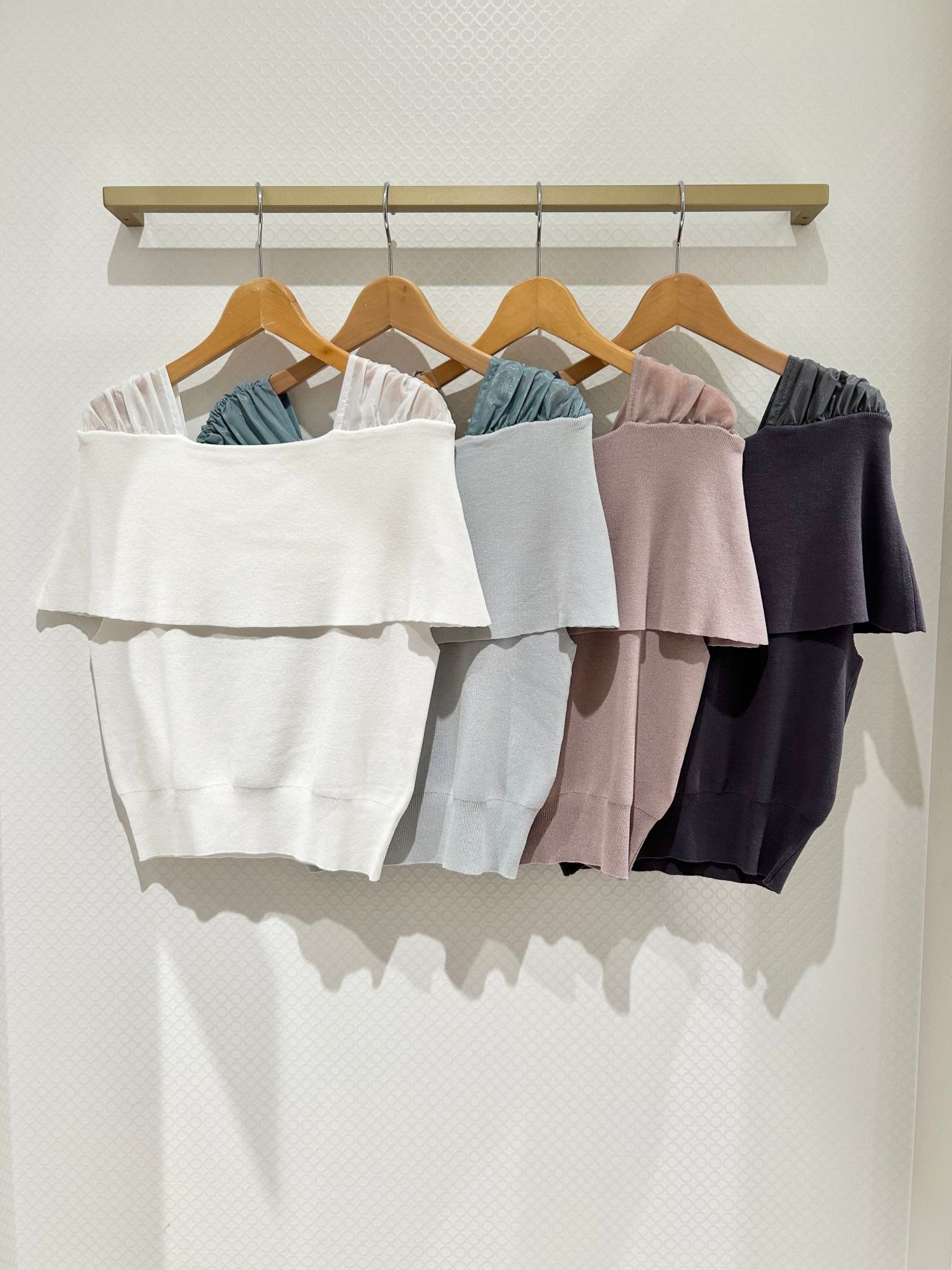 ꒰ঌ 異素材使いオフショルニット ໒꒱