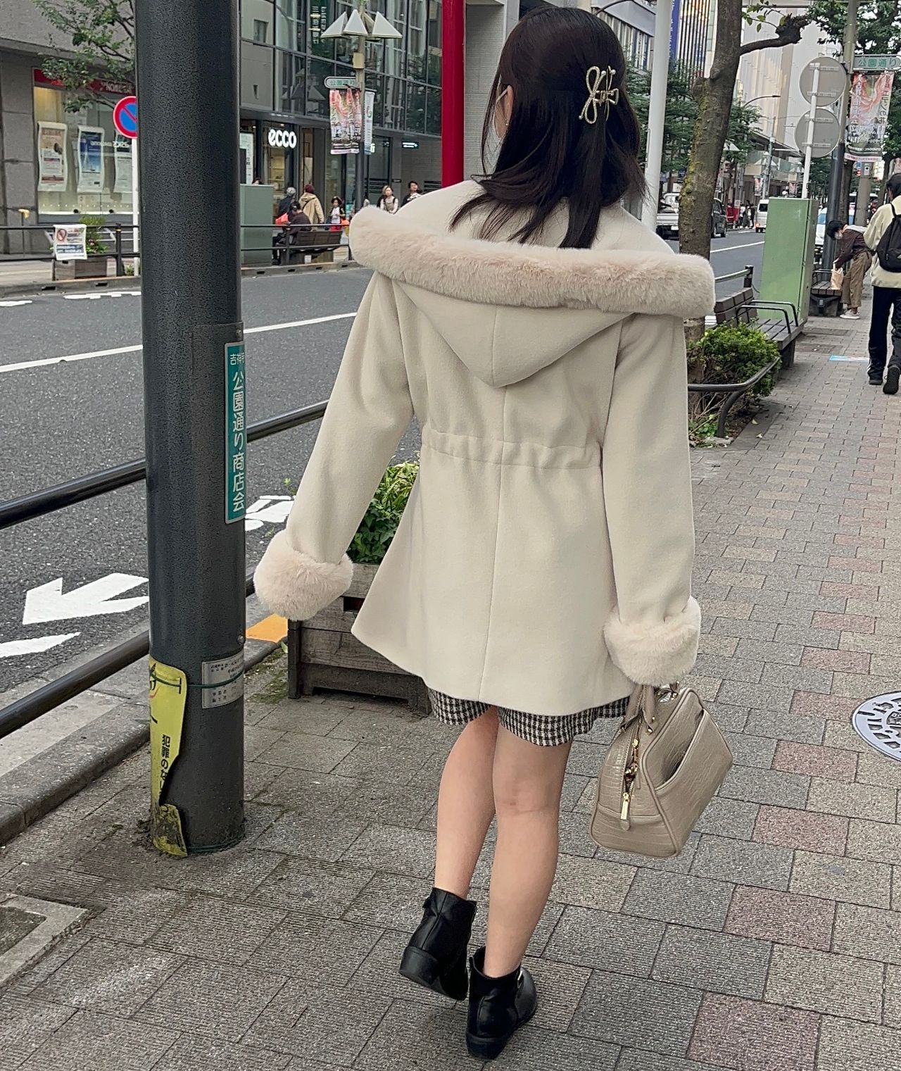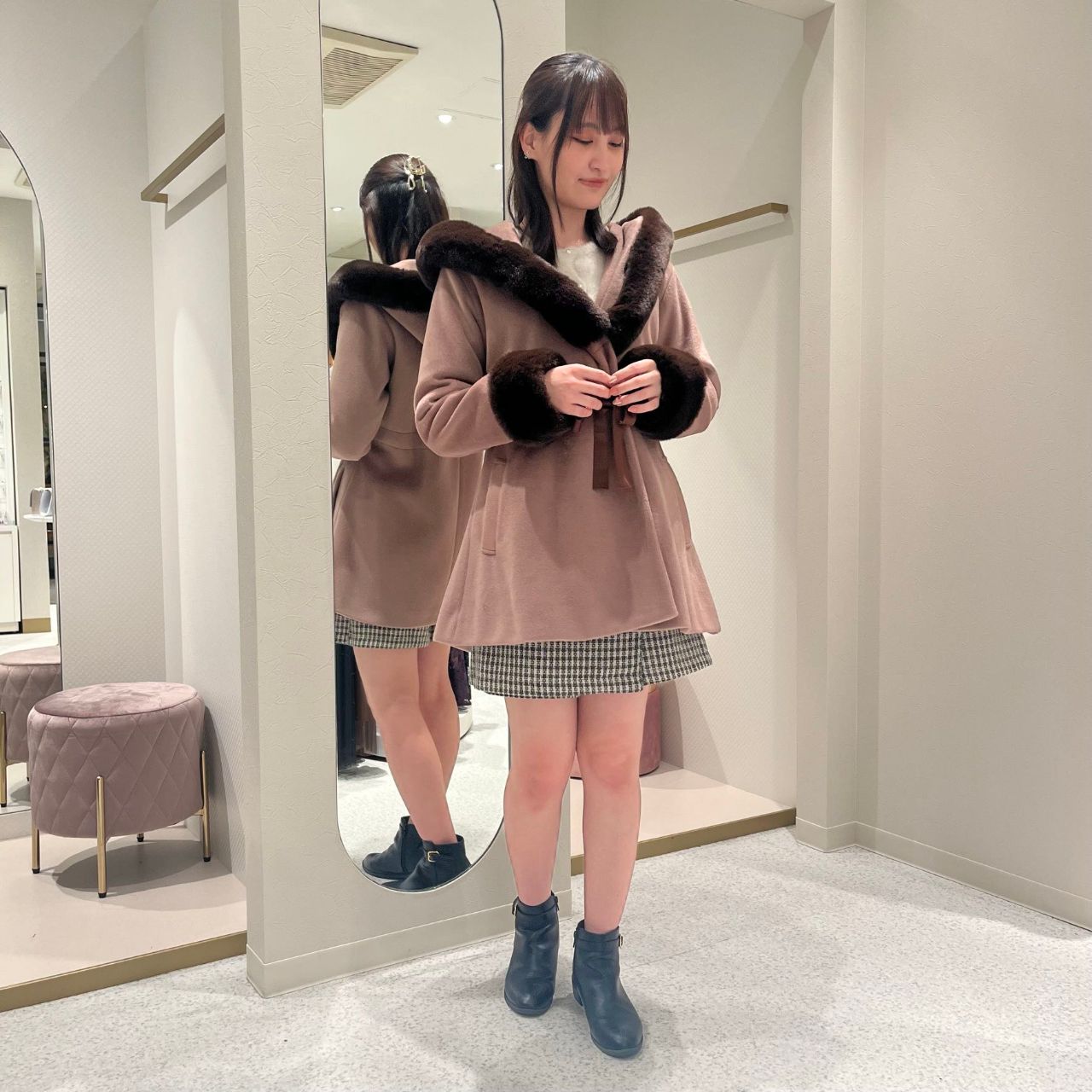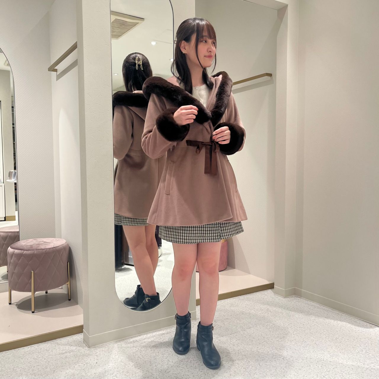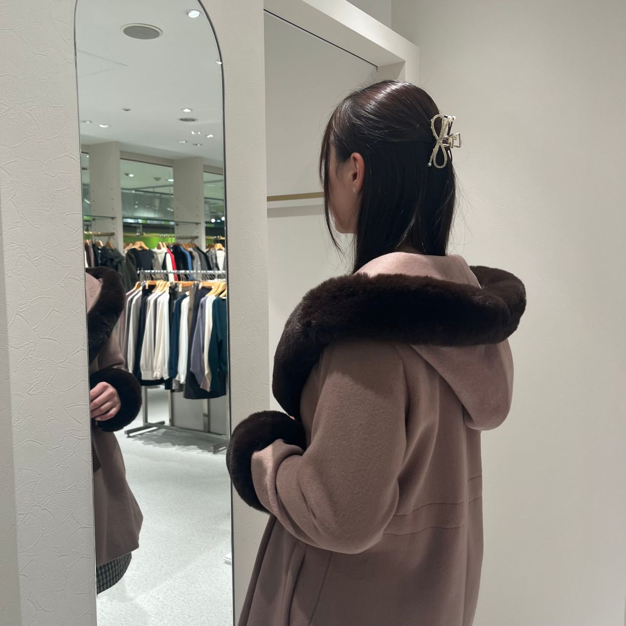 後ろから見てもファーが見えるので、華やかです!