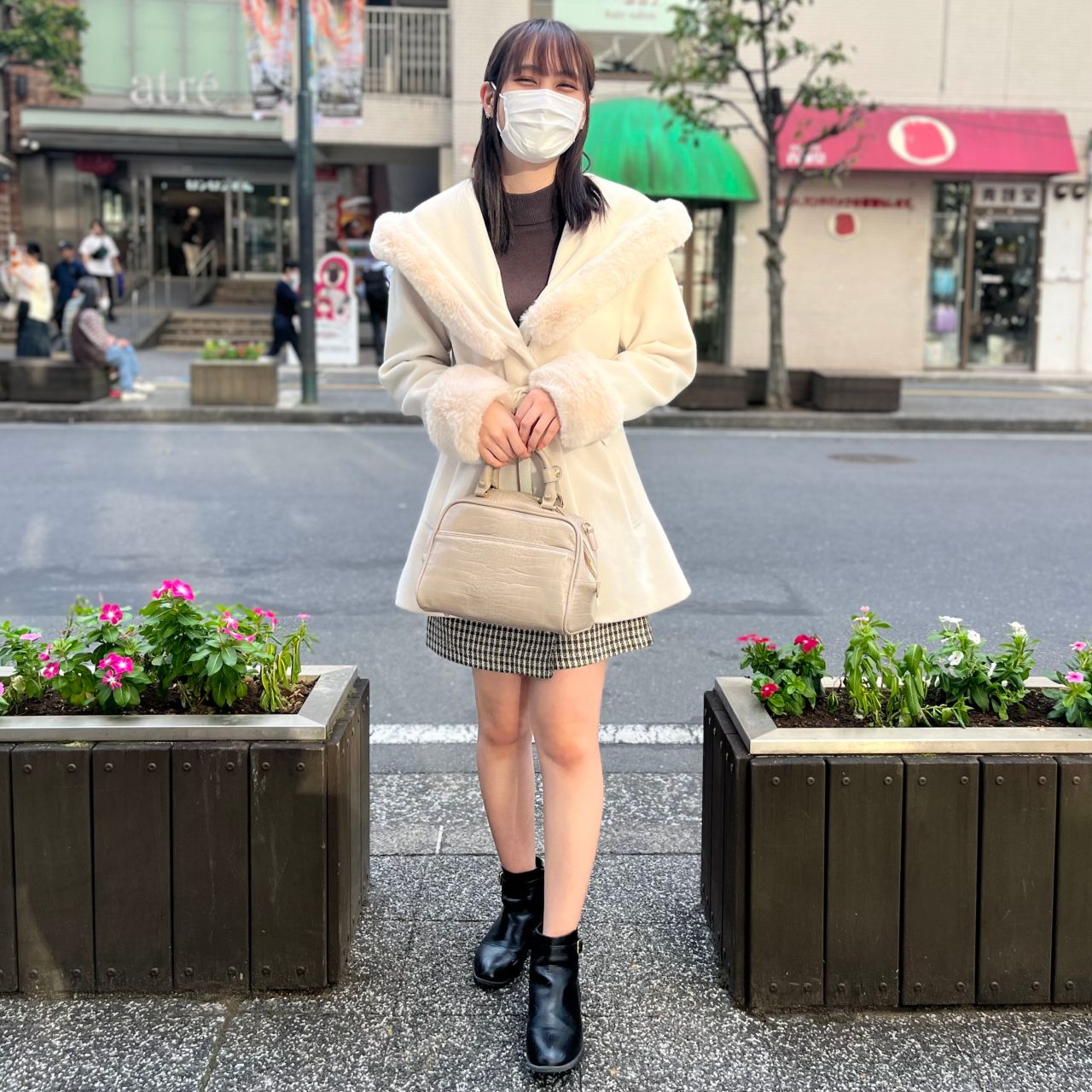 同系色のファーが抜け感を演出し、1枚でコーデが垢抜けます♡