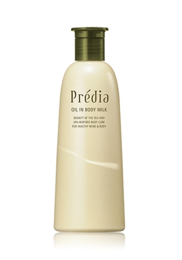 こちらのプレディア オイルinボディミルクは、ククイナッツオイルや真珠パウダーが配合されたボディケアで、肌にのせるとオイルのようにじゅわりと広がり、肌を柔らかくなめらかに導いてくれます!