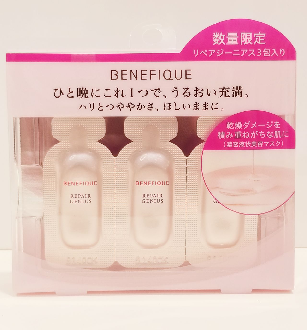 こちらは、オールインワンのパック効果のある美容液としておなじみのリペアジーニアスです!